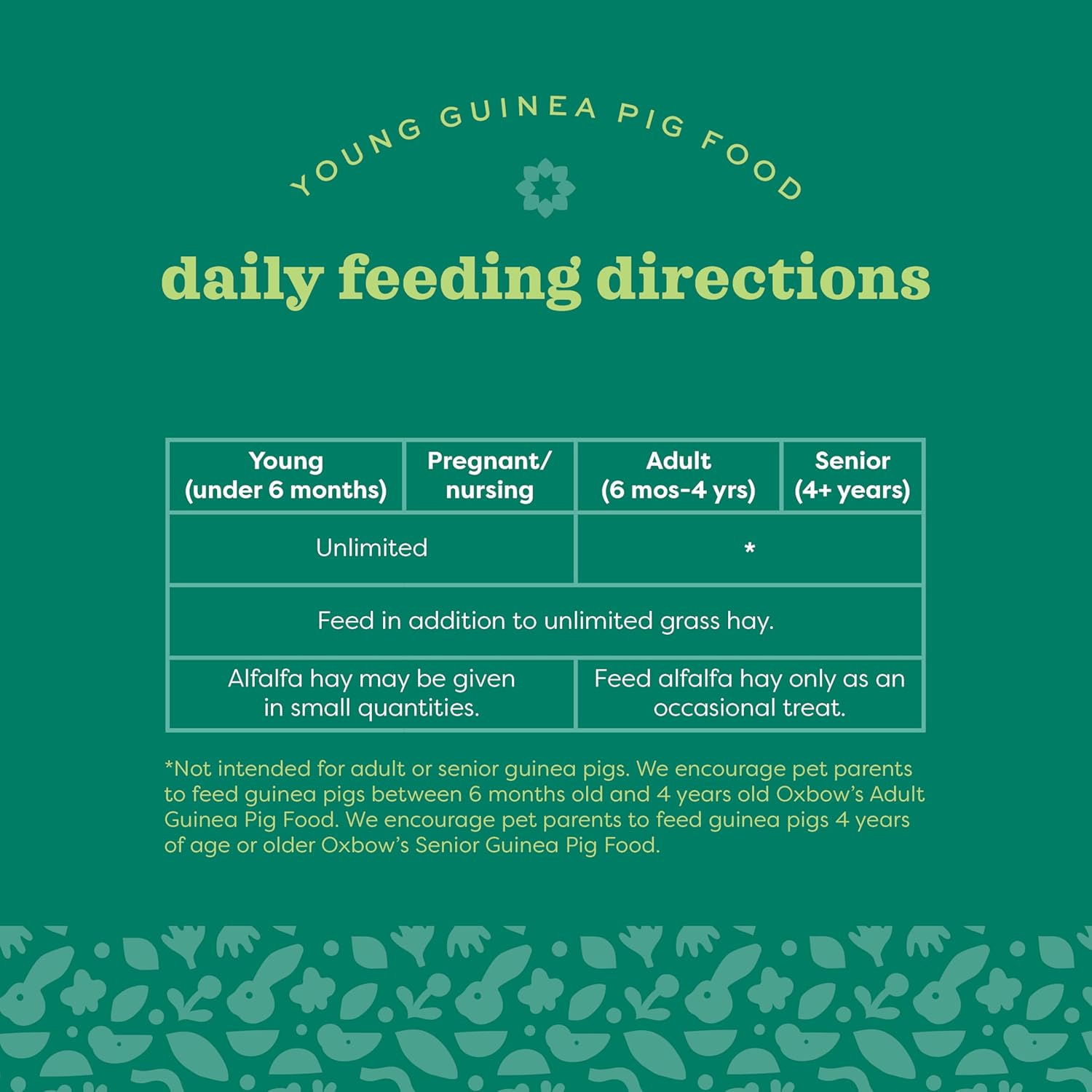 - YOUNG GUINEA PIG FOOD: Immerse your pet in the natural goodness of Oxbow Essentials Young Guinea Pig Food; Our guinea pig pellet formula is designed to deliver essential nutrition to growing, pregnant, and nursing guinea pigs