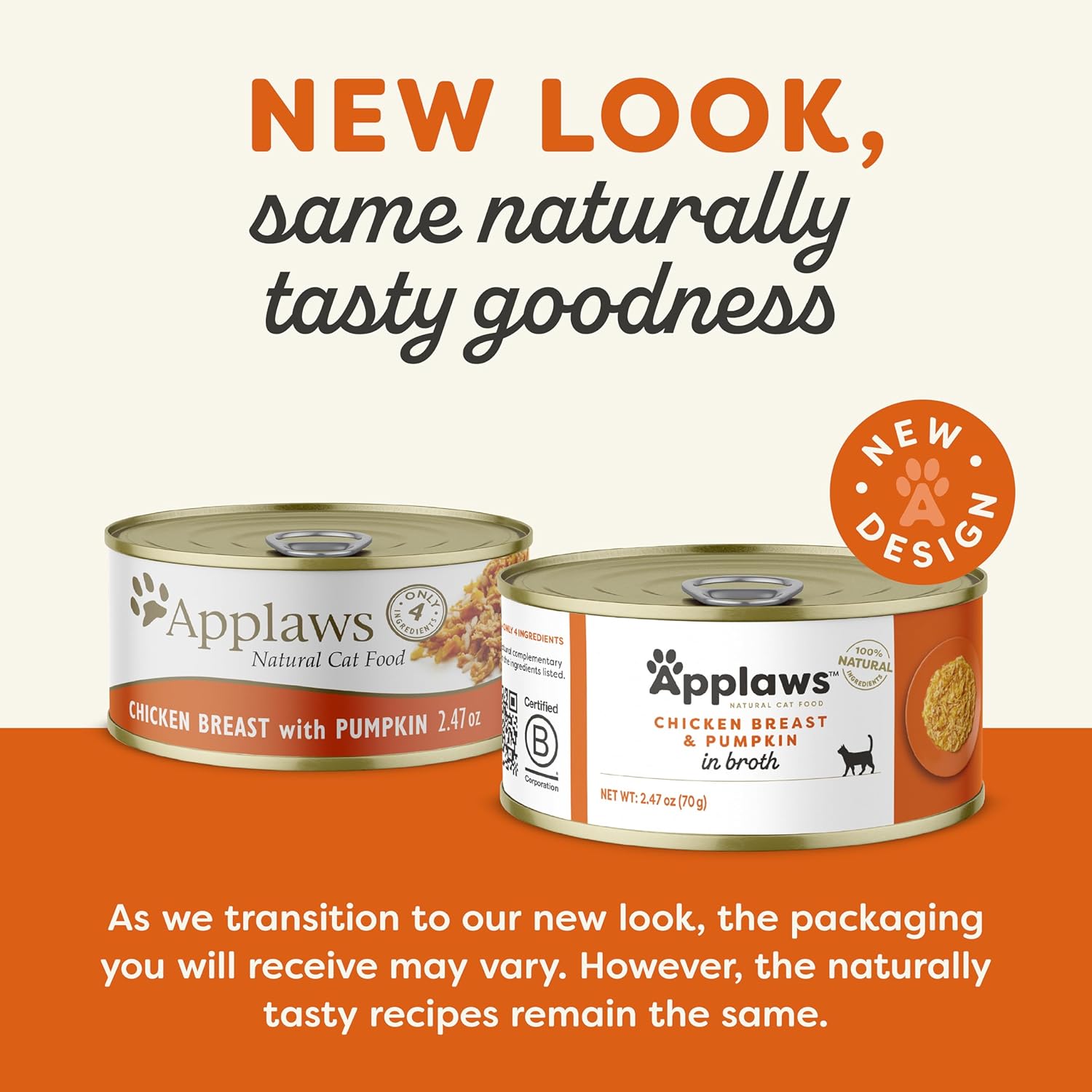 Applaws Natural Wet Cat Food, 24 Count, Limited Ingredient Canned Wet Cat Food, Chicken with Pumpkin in Broth, 2.47oz Cans