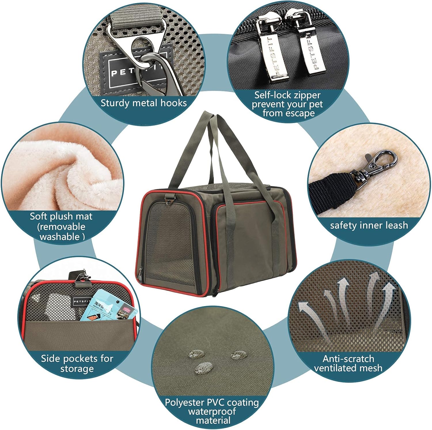 Petsfit Expandable Cat Carrier Dog Carriers,Airline Approved Soft-Sided Portable Pet Travel Washable Carrier for Kittens,Puppies,Removable Soft Plush mat and Pockets,Locking Safety Zippers