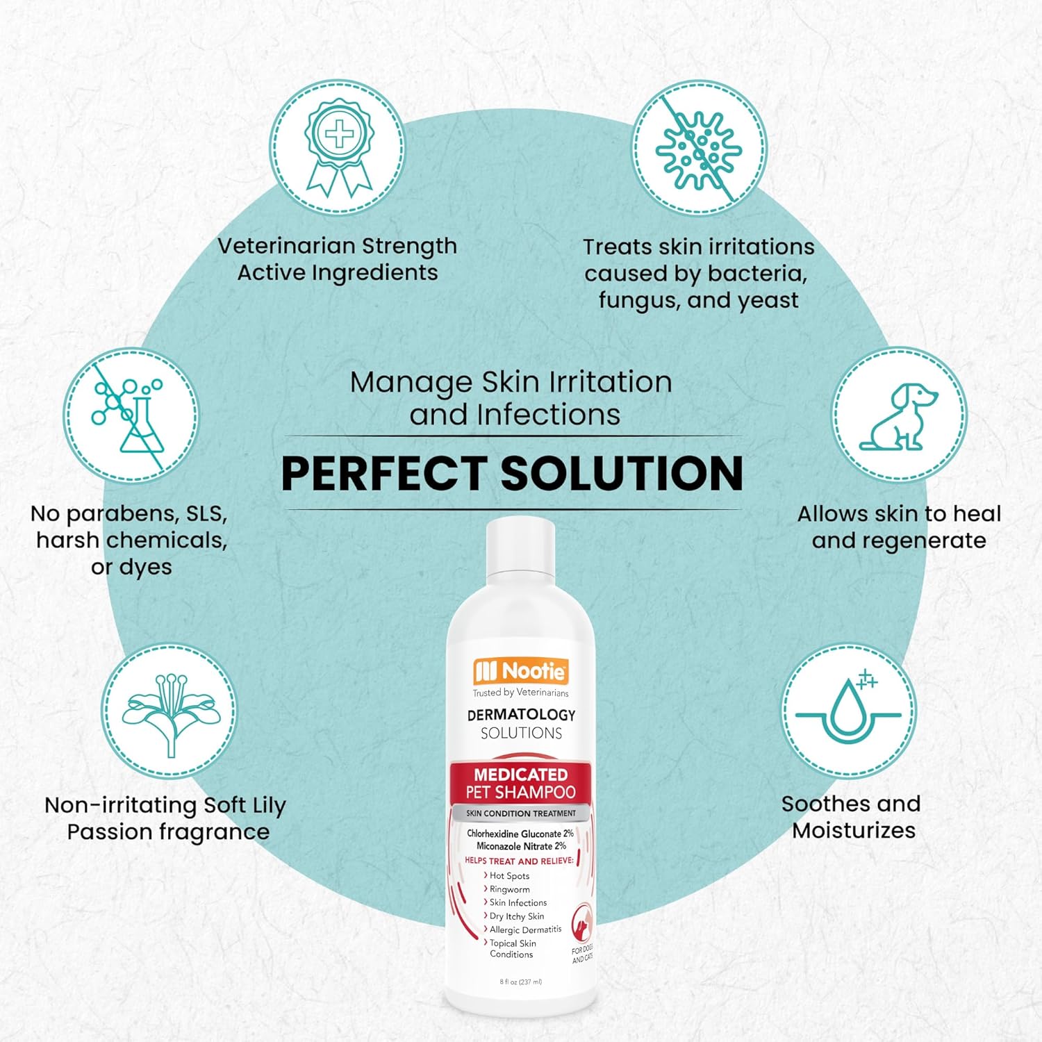 Nootie Medicated Pet Shampoo, Chlorhexidine Dog Shampoo for Itch Relief, Sold in Over 5,000 Vet Clinics & Pet Stores Worldwide- 8oz