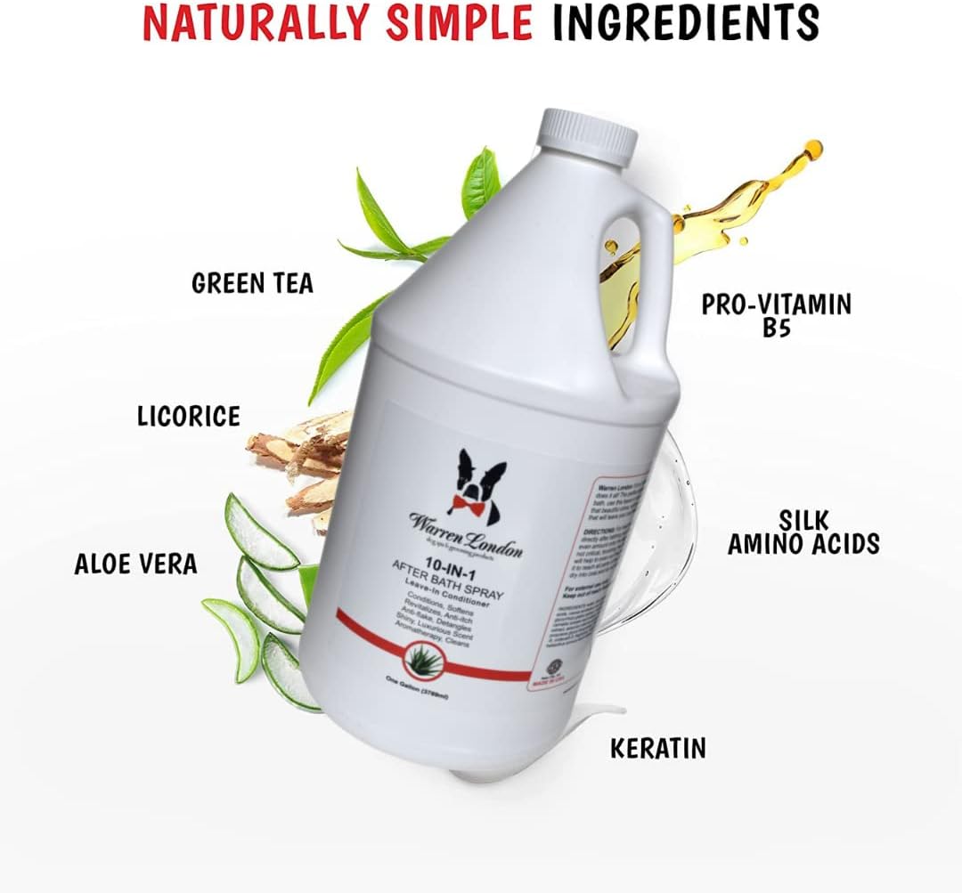 Warren London 10-in-1 After Bath Dog Spray | Dog Leave in Conditioner and Detangler | Pet Grooming Spray with Aloe Vera, Silk Amino Acids and Green Tea Extract | Made in USA | 1gal