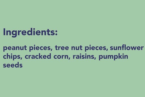 - Contains a mix of peanuts, sunflower chips, cracked corn, and pumpkin seeds