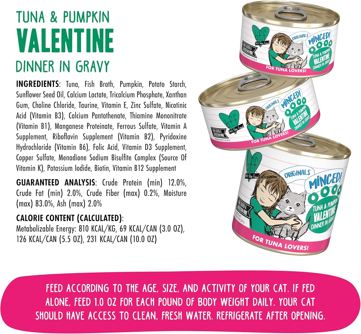 Weruva BFF Minced Natural Wet Cat Food, Tuna and Pumpkin Valentine in Gravy, 5.5oz Can, Pack of 24