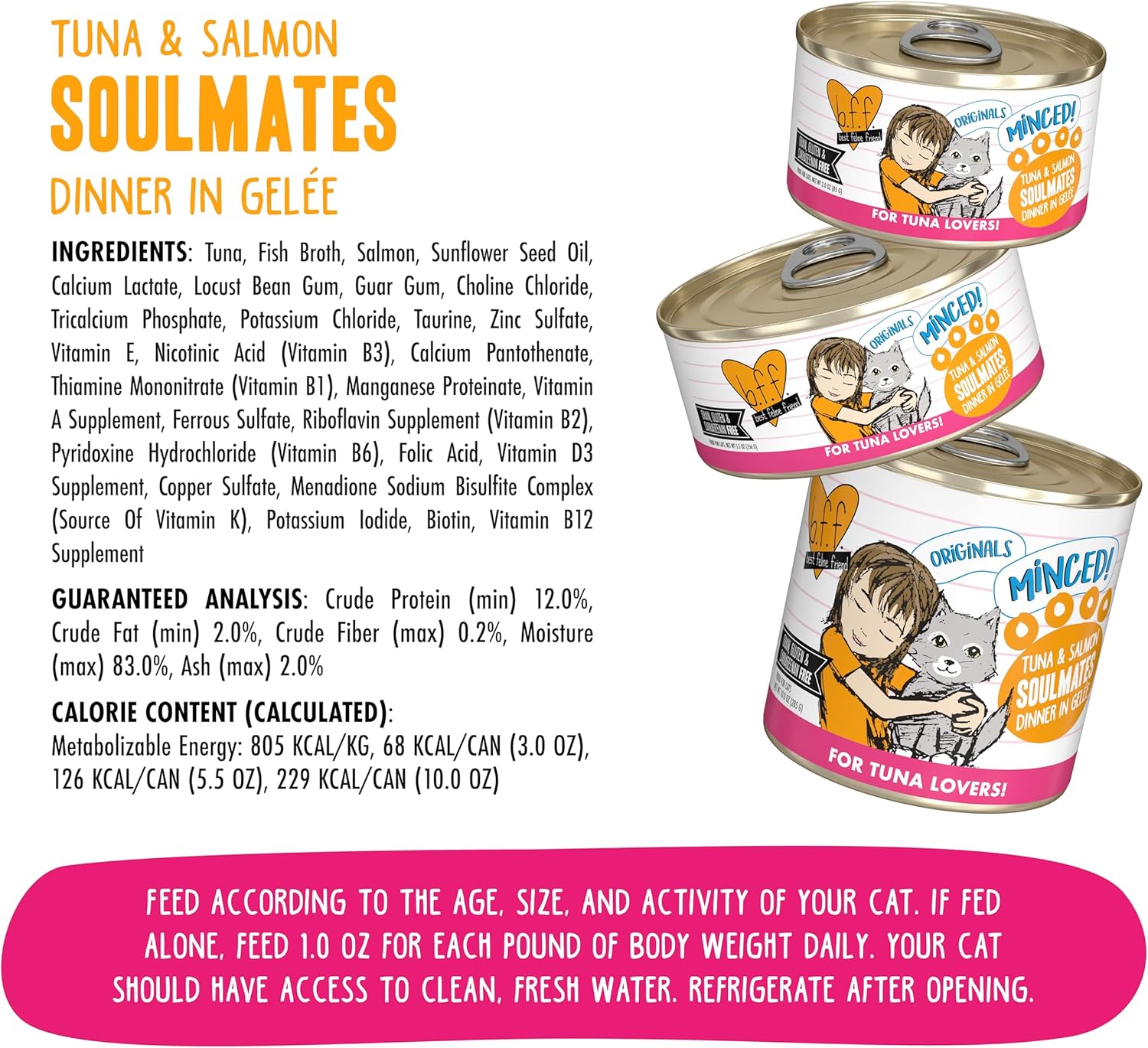 - Tuna and Salmon Soulmates with wild caught skipjack tuna and salmon minced to perfection in a delicious gelee, 3oz Can, Pack of 24