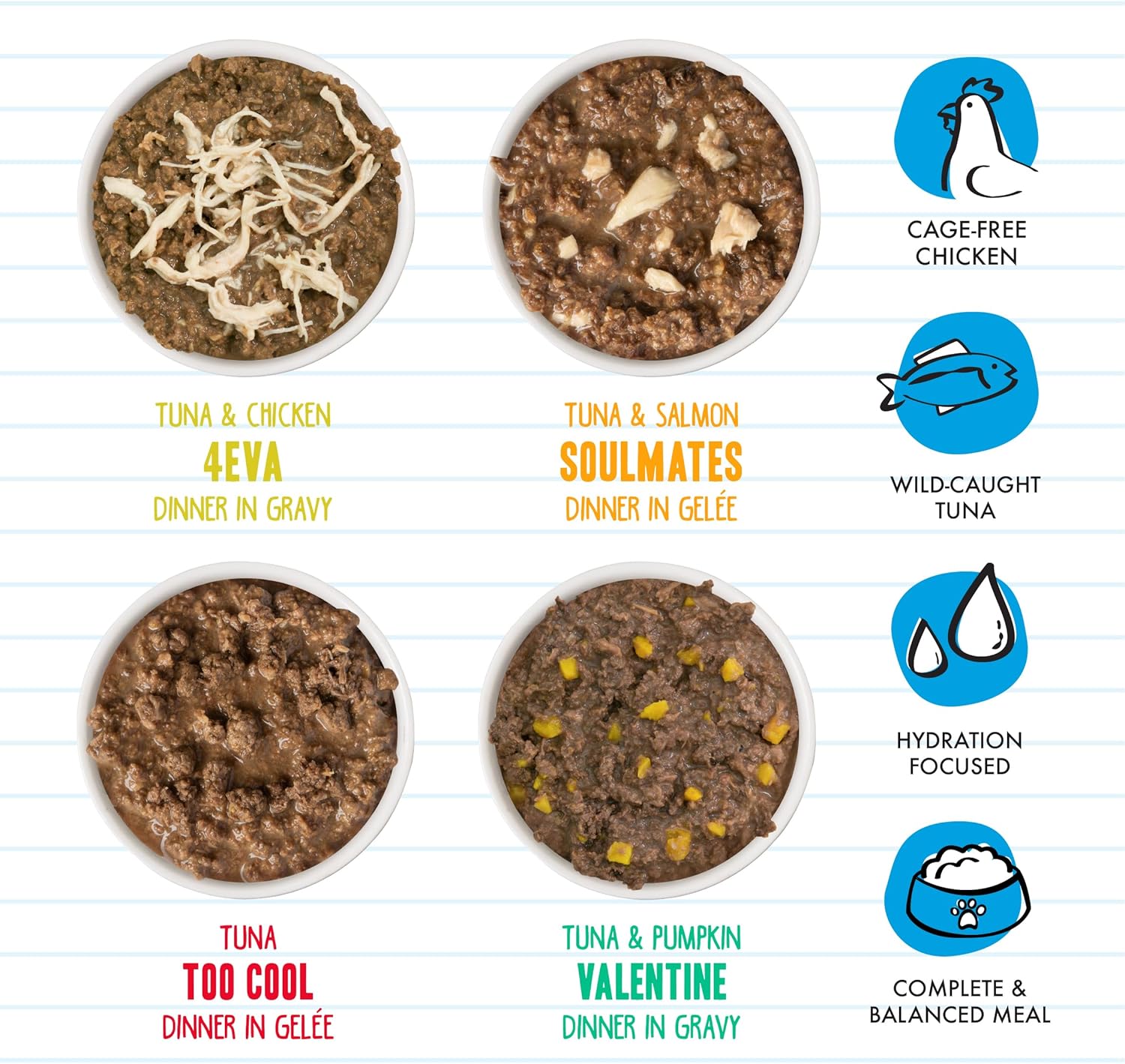 - Hydration Focused Recipes. Moisture rich goodness to fuel your cat’s playful purrs and pounces