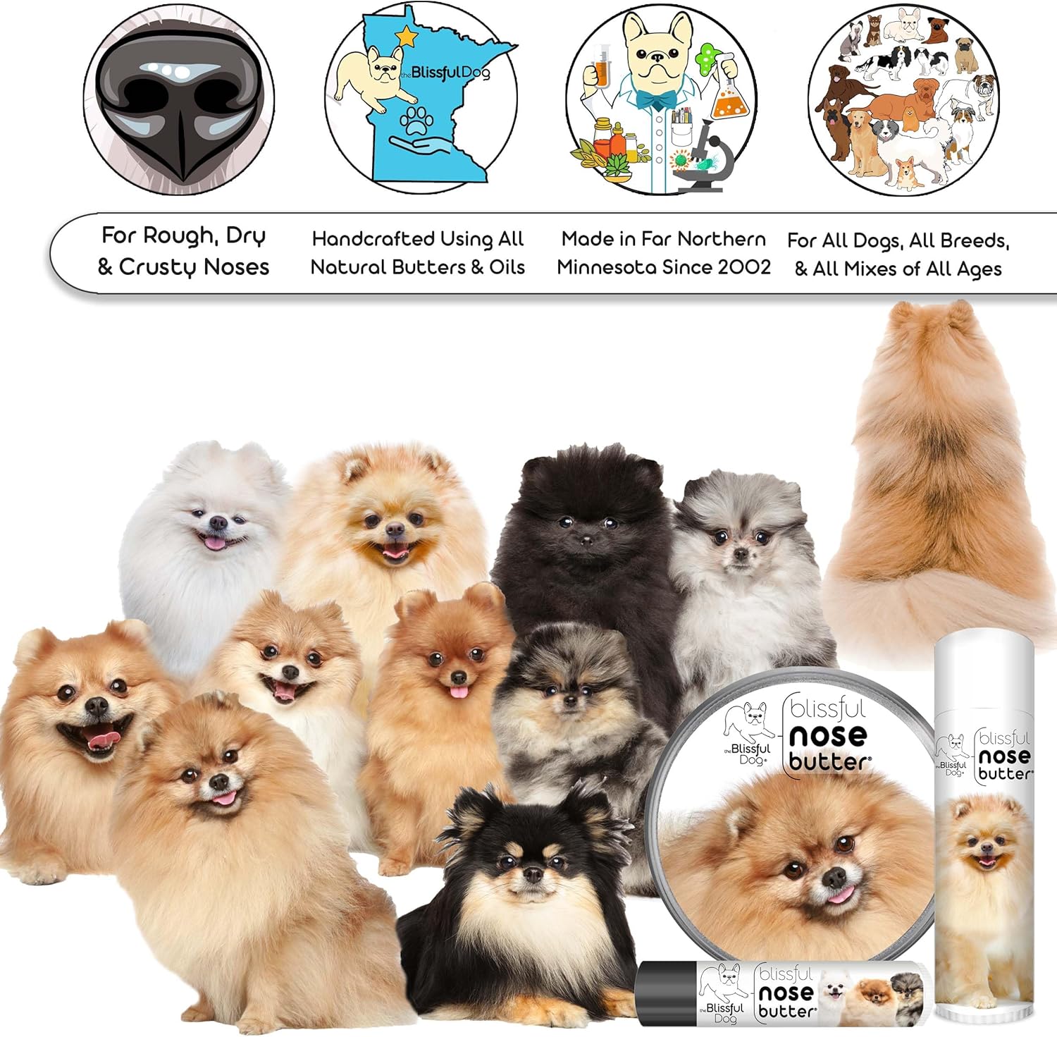 The Blissful Dog Pomeranian Nose Butter for Dry, Cracked Skin, Lick-Safe Dog Nose Balm with Moisturizing Shea Butter, Almond, Olive, and Essential Oils, Pet Supplies, Uncented, 8 oz.