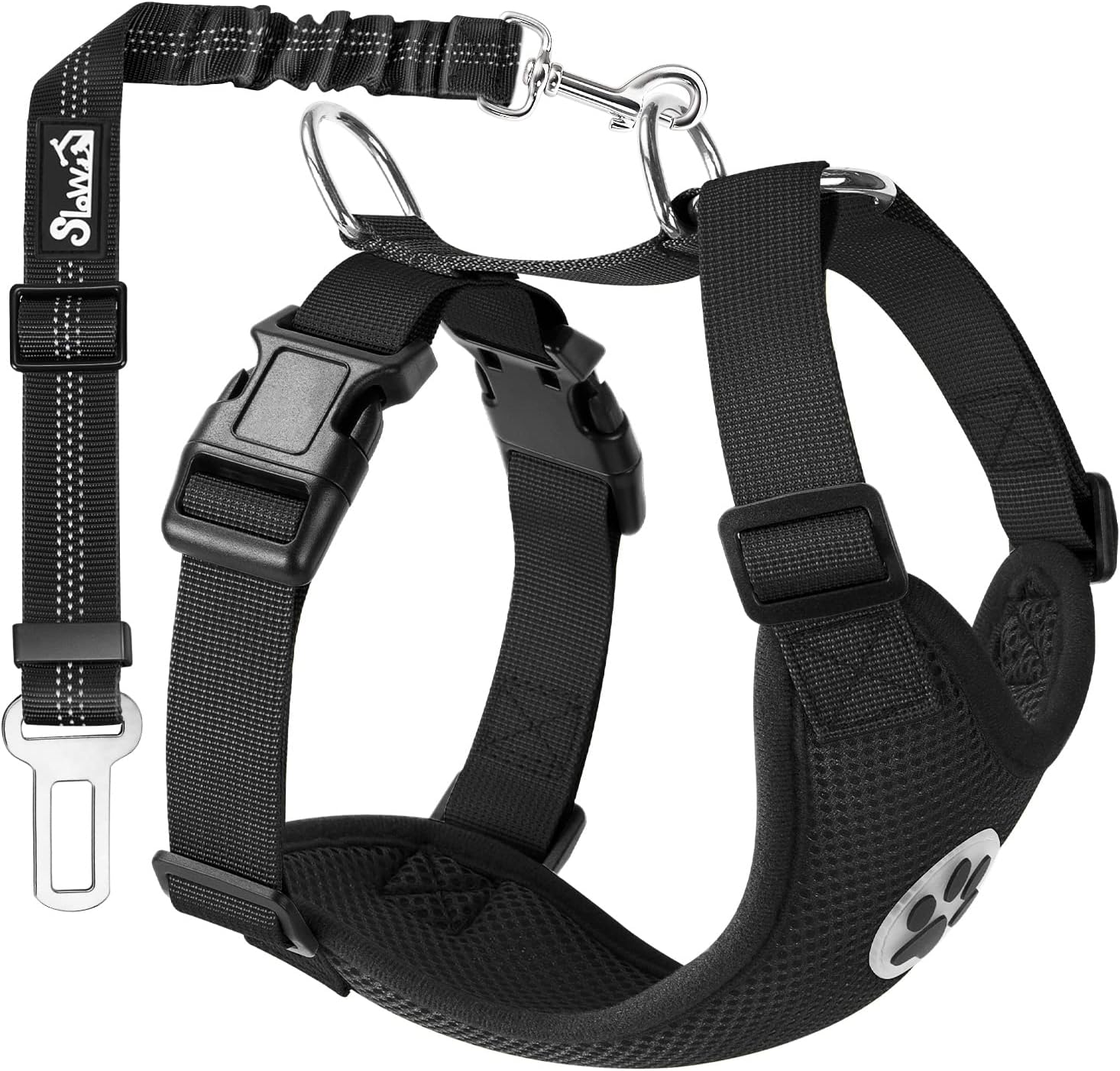 SlowTon Dog Seat Belt Harness for Car, Dog Car Harness Adjustable Mesh Breathable & Dog Seatbelt Safety Tether with Elastic Bungee for Small Medium Large Pets(Black, Single Clip, XS)
