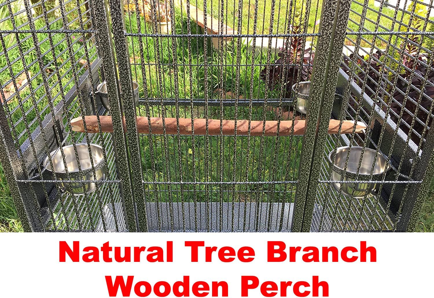 - 【Bar Spacing: 3/4''】 Open play top area with two wood Perches, two stainless steel cups,