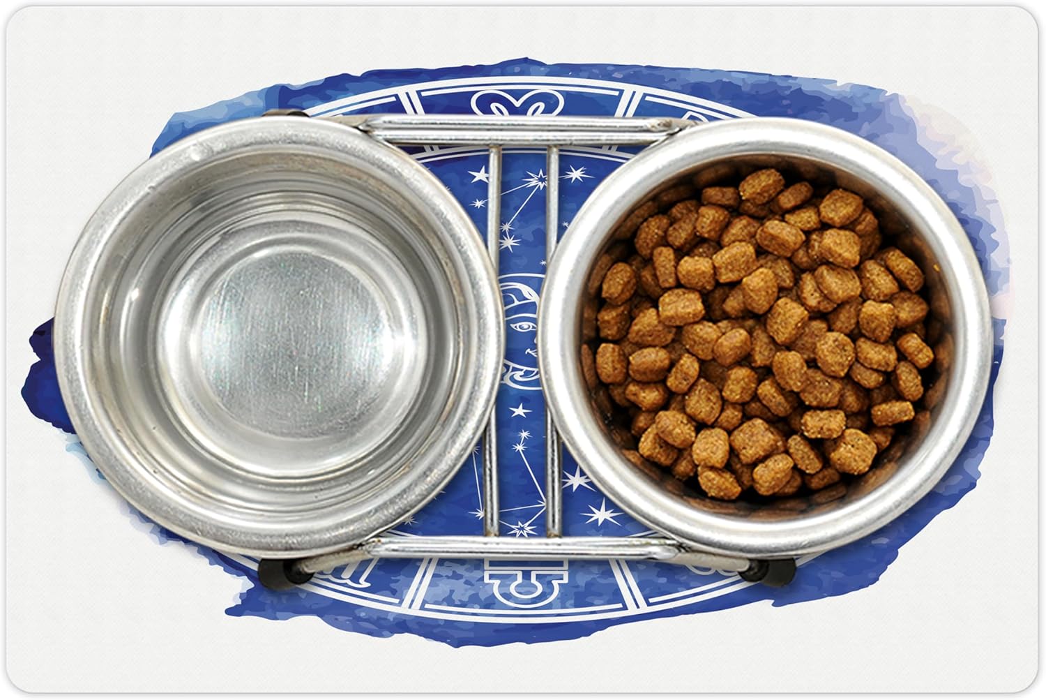 Lunarable Sun and Moon Pet Mat for Food and Water, Zodiac Circle Watercolor Backdrop Astrology Divination Fantasy Mystic, Non-Slip Rubber Mat for Dogs and Cats, 18" X 12", Blue White