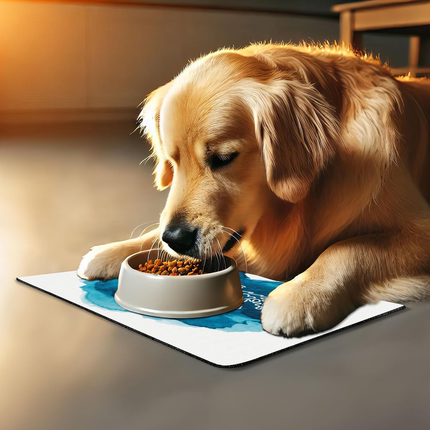 - Features - Fun prints and long-lasting colors. Find any theme and color you want to match your room decor or your pet’s personality. This pet feeding mat can even feature your cat's or dog’s favorite item or design, adding a cheerful touch to your pet’s feeding area.
