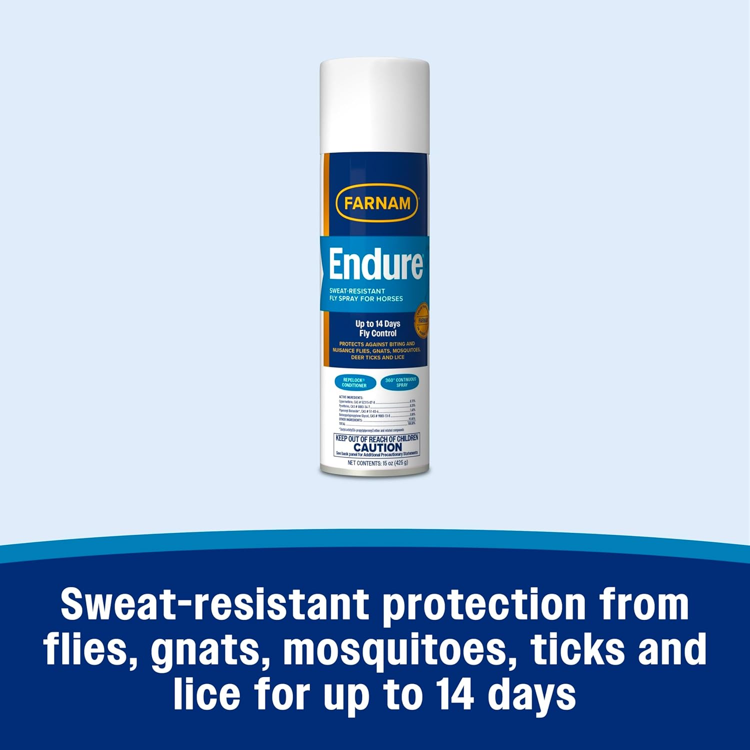 - POWERS THROUGH SWEAT and water; endure Sweat-Resistant Fly Spray for Horses is ideal for even the most challenging weather conditions, including heavy rain and muggy heat