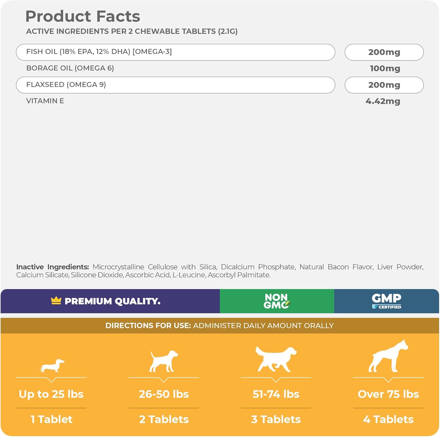 - Immune System - Our natural formula contains Vitamin E which is a powerful antioxidant that supports and enhances your dog’s immune system while also having Borage Oil which has anti-inflammatory properties.