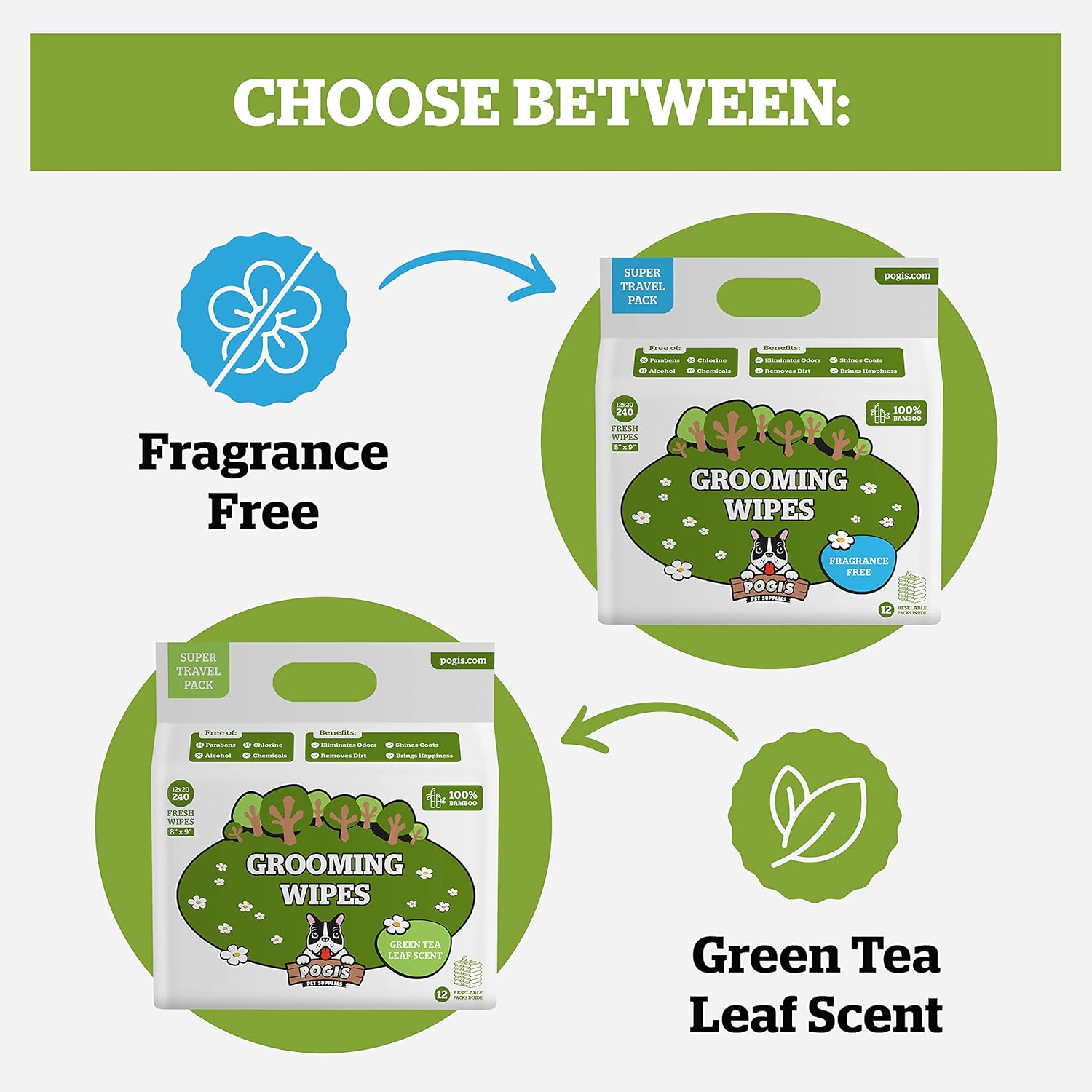 Pogi’s Dog Wipes Travel Packs – Hypoallergenic Pet Wipes for Paws, Body & Butt – Cleaning & Hydrating, Fragrance Free, 240-Count