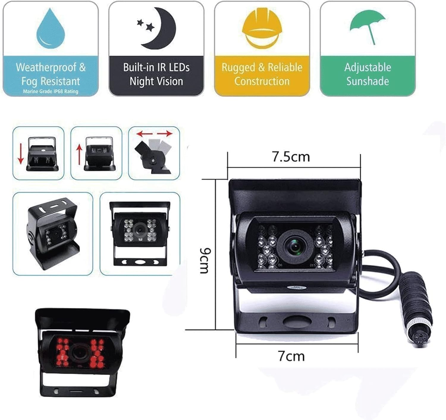 - 【Reverse Camera Monitor With Wide Comatability】Voltage Range From 12-24V DC Power to Accomodate a Wide Variety of Large Vehicle as Truck, Bus, RV, Tractor, Car and ect