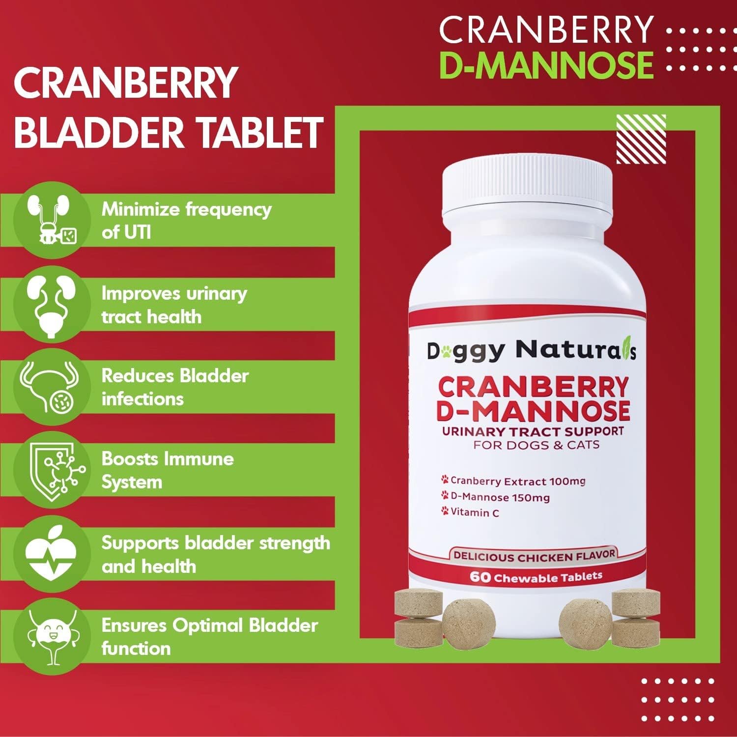 - ❤️Cranberry D-Mannose for dogs and cats is a natural solution to help support and maintain the healthy and normal function of the urinary tract system. Cranberry clinically proven to flush bad bacteria & promote bladder & urinary health