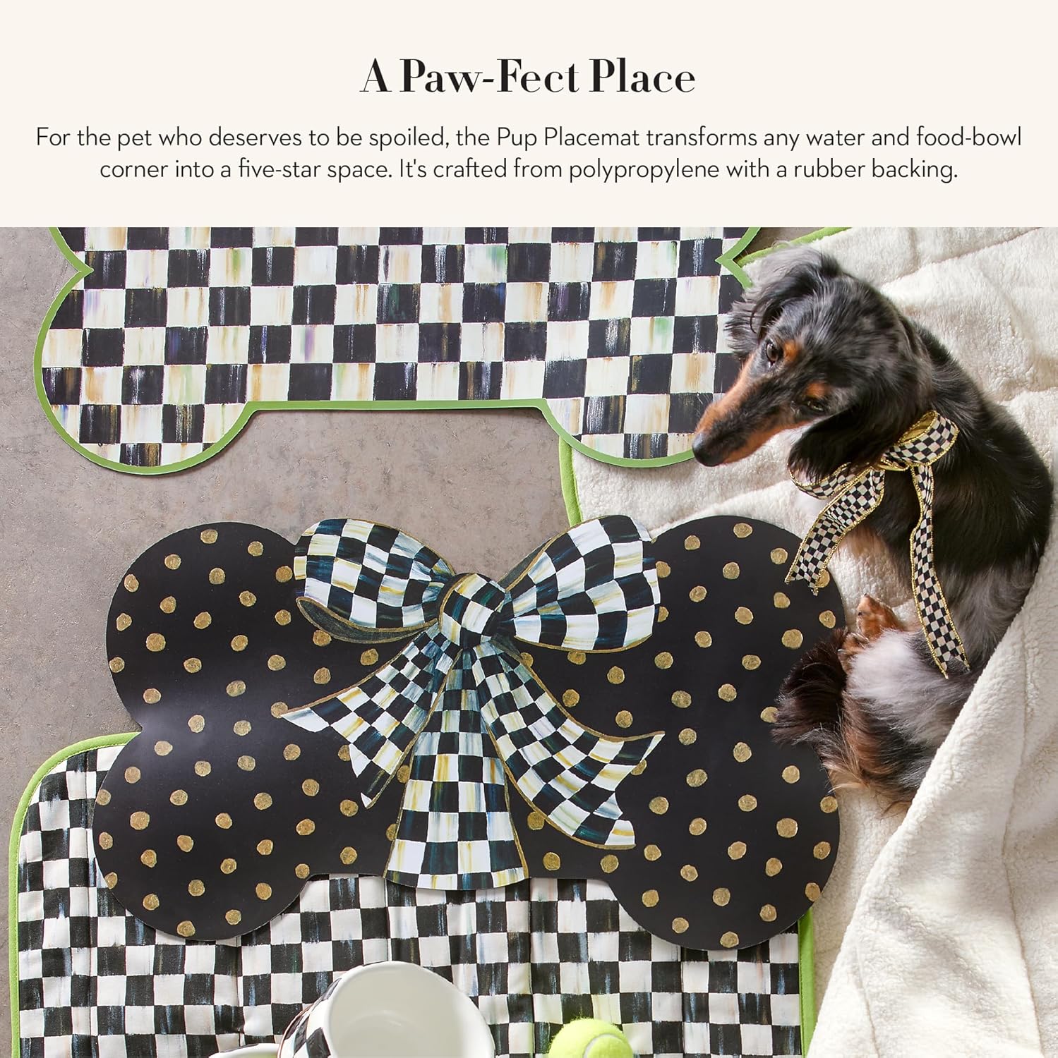 MACKENZIE-CHILDS Pup Placemat, Cute Pet-Food Mat for Dog Bowls and Cat Bowls, Courtly Bow