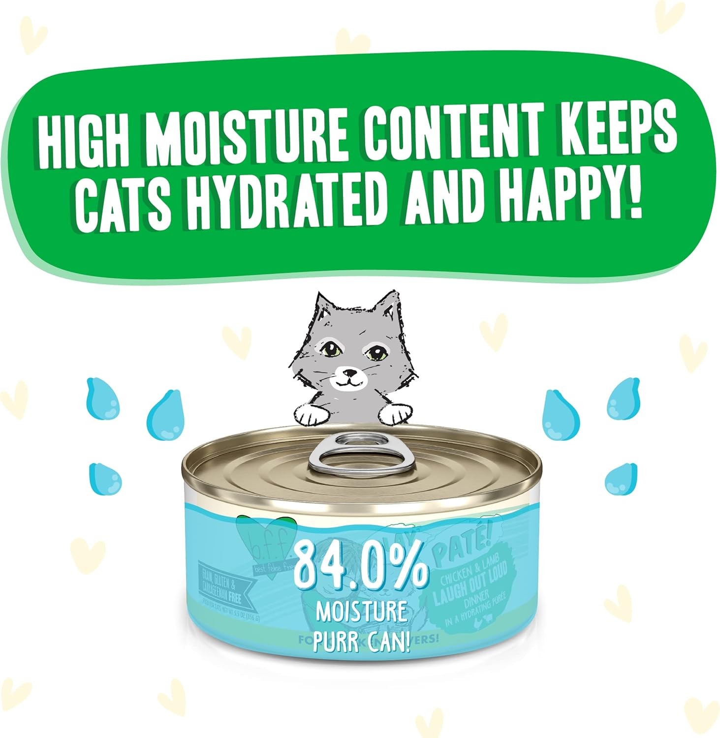 - B.F.F. Play - Protein-rich, high-moisture wet cat food that is low in carbs and fat. Pate Lover’s, Aw Yeah!
