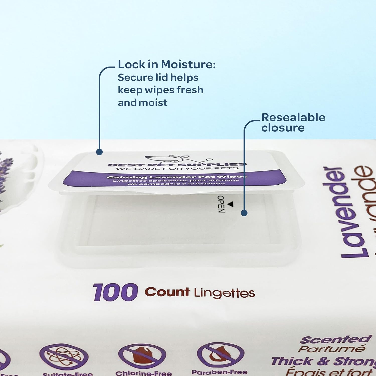 Best Pet Supplies Pet Grooming Wipes for Dogs & Cats,Deodorizer for Coats & Dry, Itchy, or Sensitive Skin, Clean Ears, Paws, Body, & Butt - Calming Lavender, 400 Count