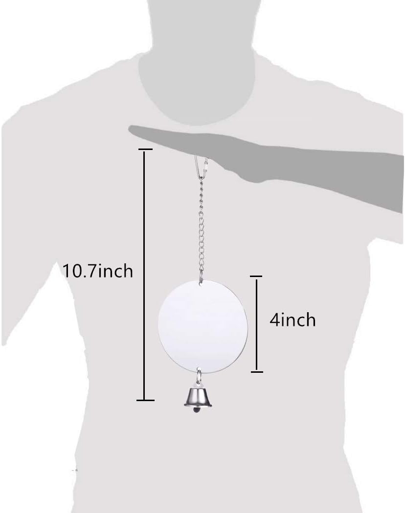 - ANTI-SHATTER--The anti-shatter mirror can satisfy the birds' habitual needs of looking into the mirror. With chain and bells,Cute shape, with bell toys, to stimulate the curiosity of the bird