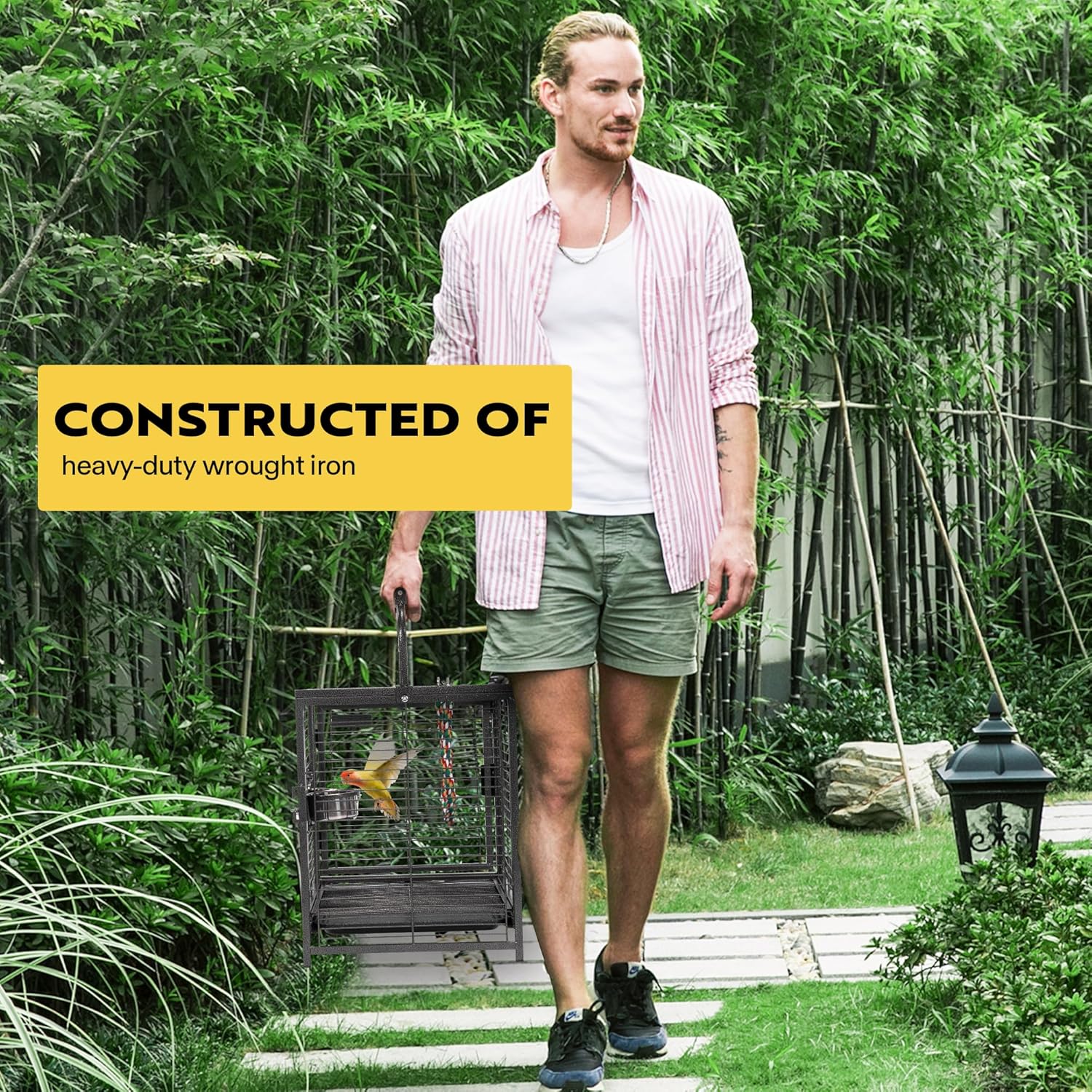 VIVOHOME 19 Inch Wrought Iron Bird Travel Carrier Cage for Parrots Conures Lovebird Cockatiel Parakeets Black