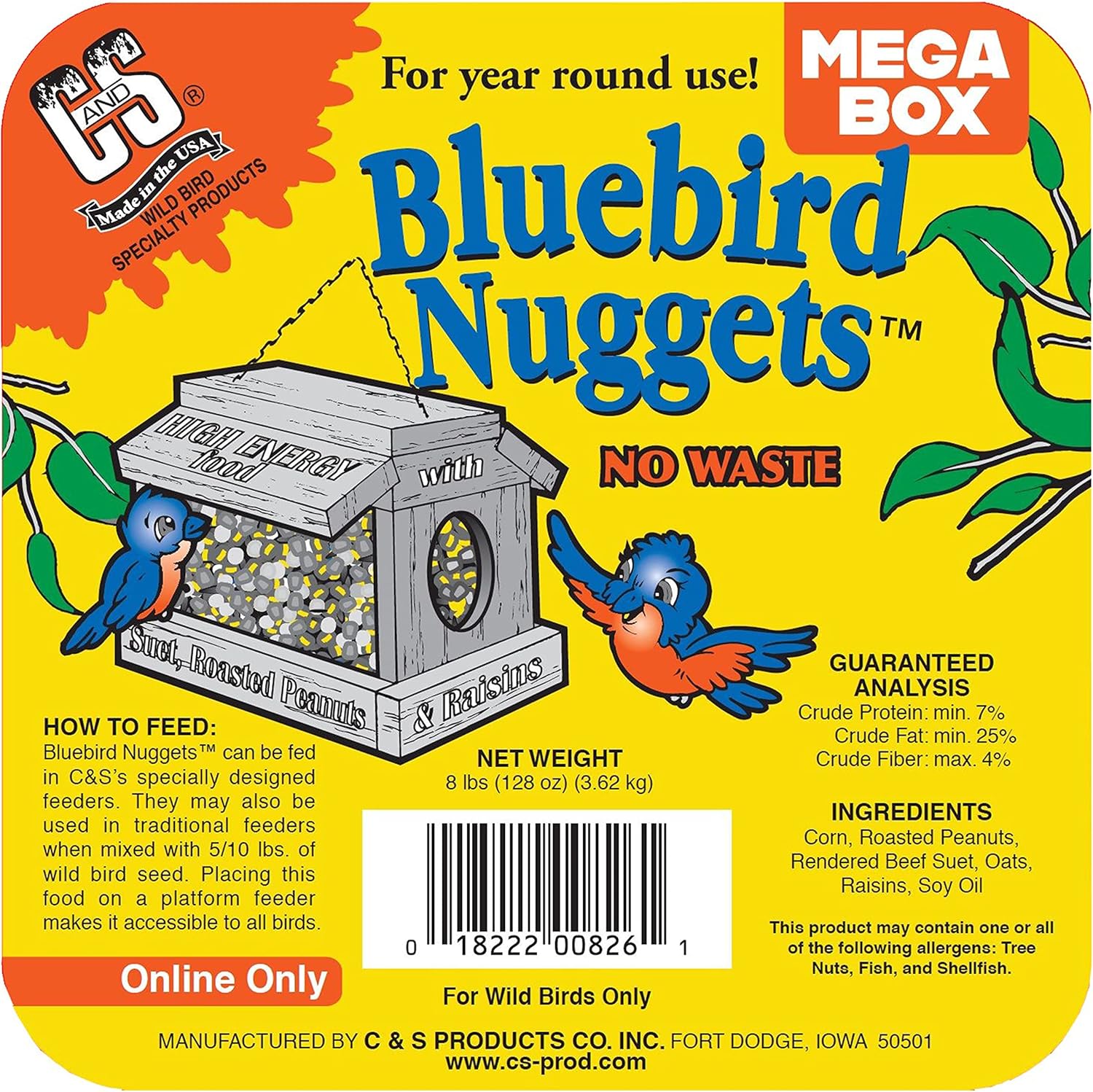 - ECONOMICAL & EASY TO USE compared to traditional seeds. C&S Bluebird Suet Nuggets combined with a nugget feeder offer a great value for today’s wild bird feeding customer.