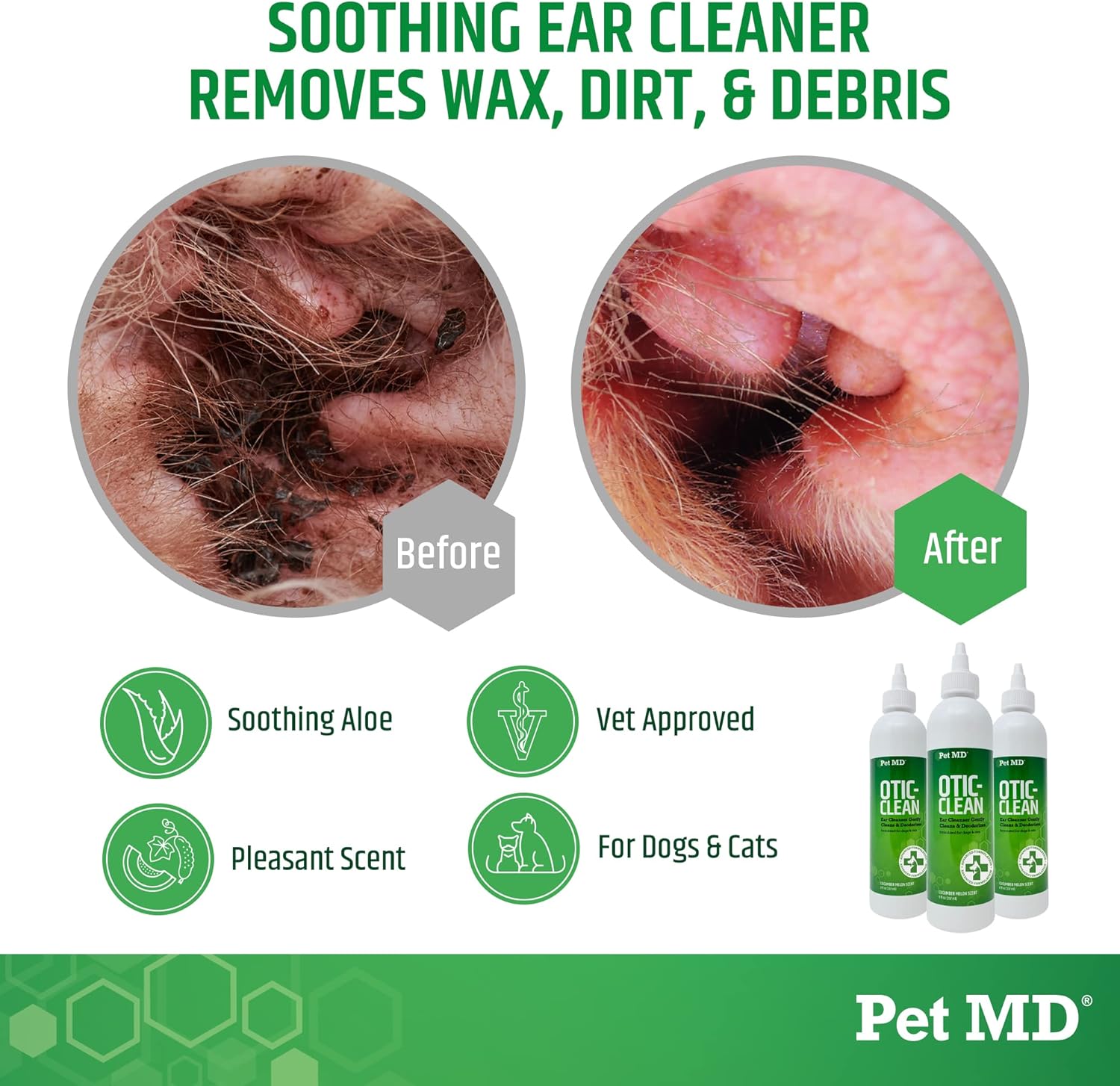 Pet MD Otic Clean Dog Ear Cleaner for Cats and Dogs - Effective Against Infections Caused by Infections, Itching and Controls Ear Odor - 8 oz (Cucumber Melon)