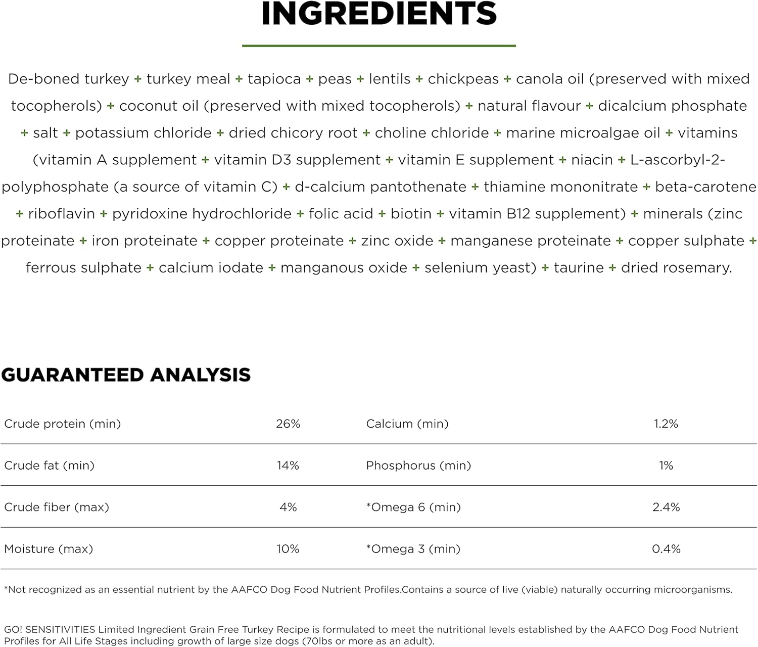 Go! Solutions Sensitivities Limited Ingredients, Grain-Free Dry Dog Food, Turkey Recipe for Sensitive Stomach, 12 lb Bag