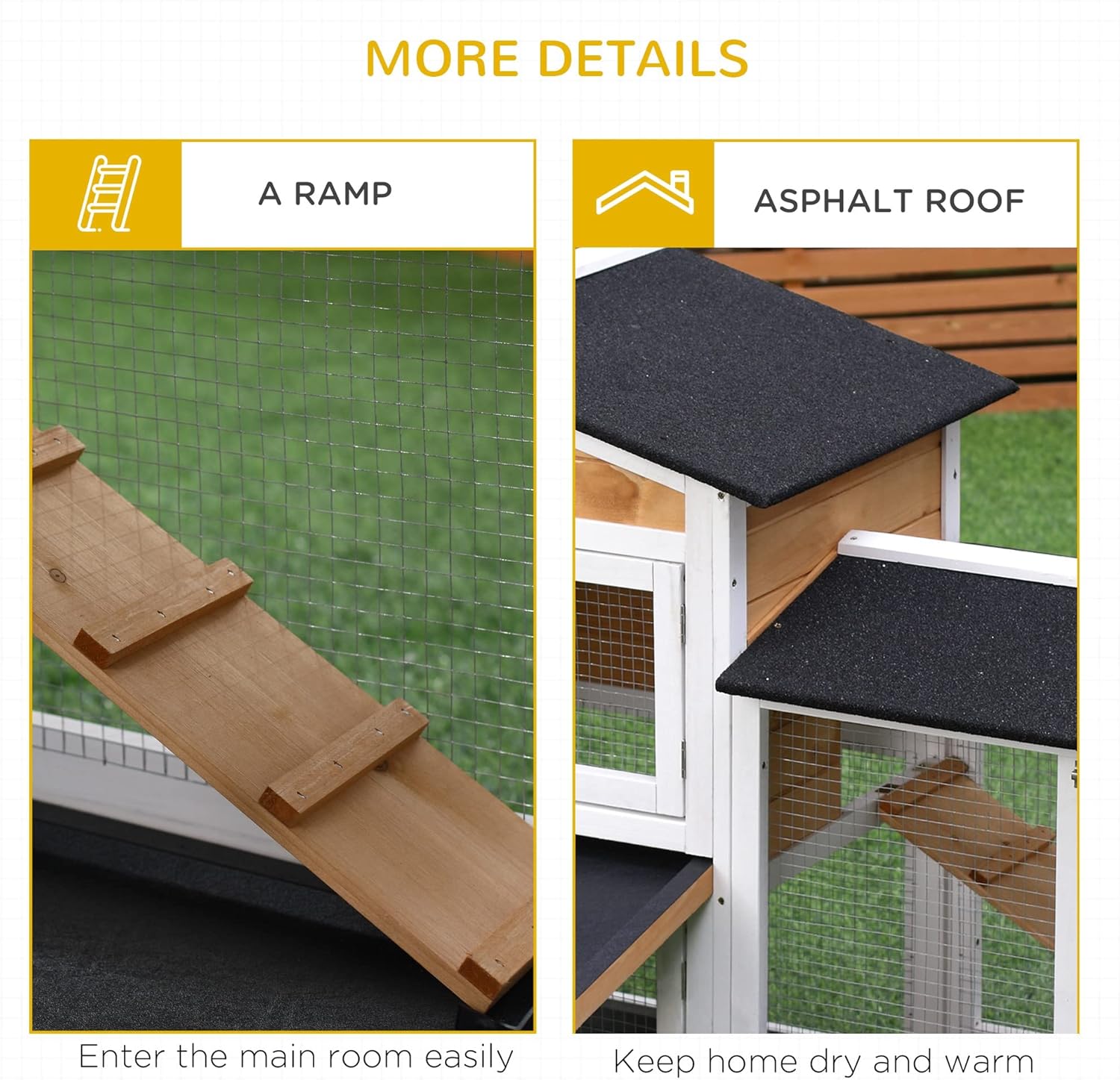 PawHut 62" Rabbit Hutch, Wooden Bunny Hutch, Guinea Pig Cage, Small Animal Enclosure with Run Area, Removable Tray, Asphalt Roof, Lockable Doors and Ramp, Nature Wood