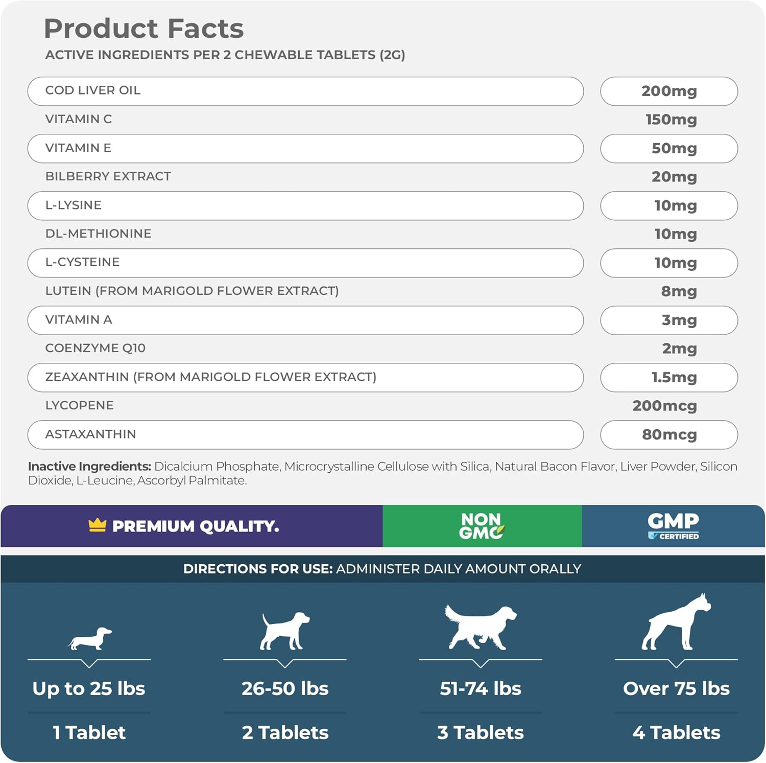 Eye Support for Dogs - 120 Chewable Tablets - Supplements for Vision, Eye Vitamins for Dogs, with Cod Liver Oil Antioxidant, Omega 3 EPA and DHA Fatty Acids.