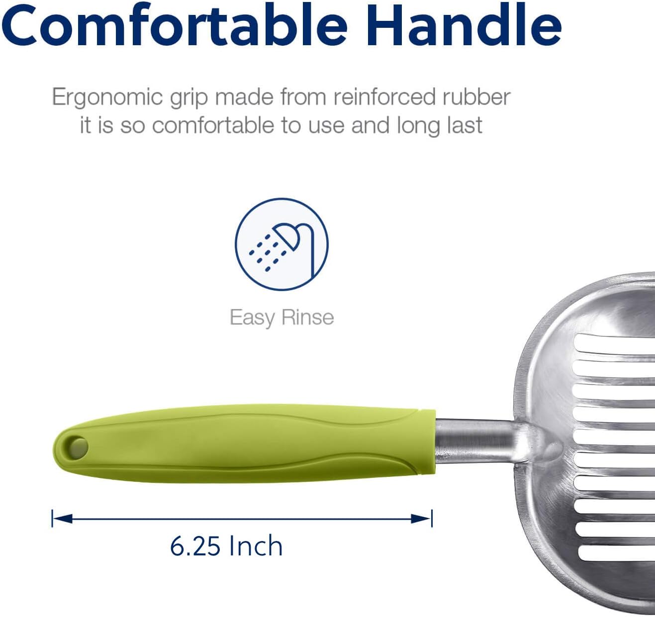 - [Features]: WePet made this scooper durable with heavy duty quality. After investigation with thousands thoughtful users, we finally make an improvement of removing the serrated edge as mentioned on reviews. The body is waterproof and very easy to clean, rust-resistant and corrosion resistant. It’s highly recommended by cat lovers for everyday use.