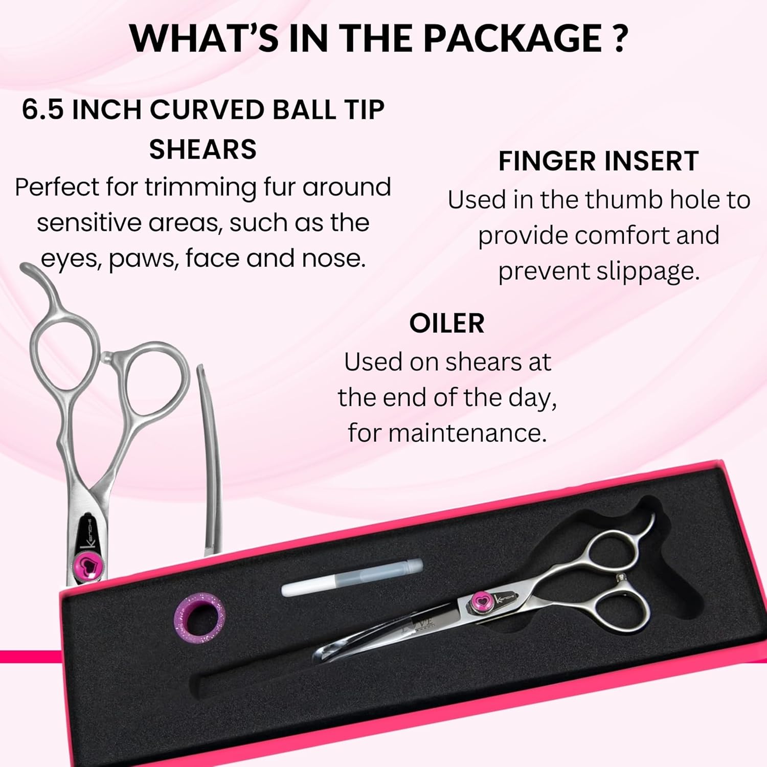 Kenchii Love Dog Grooming Scissors, 6.5 Inch Curved Balltip Shears, Dog Scissors for Grooming, Professional Pet Grooming Scissors, Safety Round Tip Shears