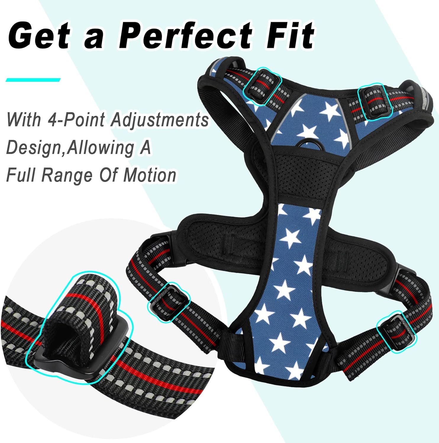 BARKBAY No Pull Dog Harness Large Step in Reflective Dog Harness with Front Clip and Easy Control Handle for Walking Training Running(Star,L)