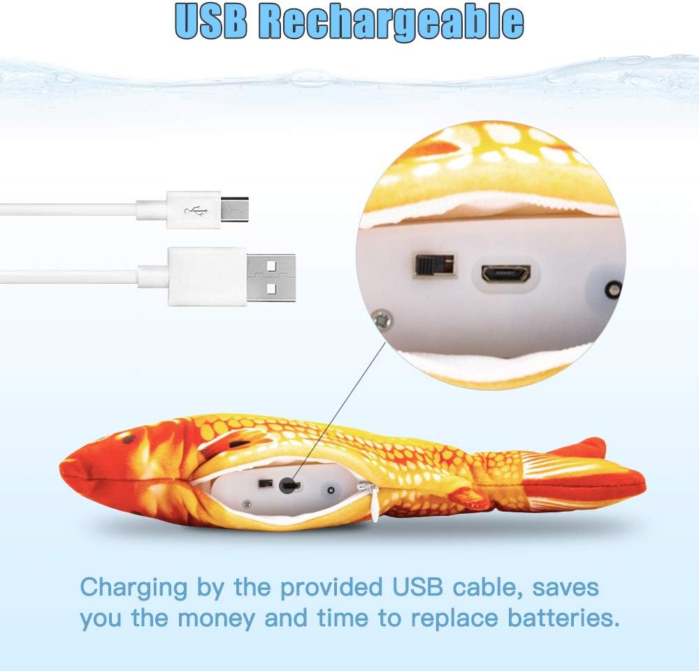 - 【Automatic Moving Fish Cat Toy】When your cat touches this wagging fish toy, the built-in sensor starts to vibrate the fish tail so that it wiggles like a live fish. Which will encourage your cat to kick and play.