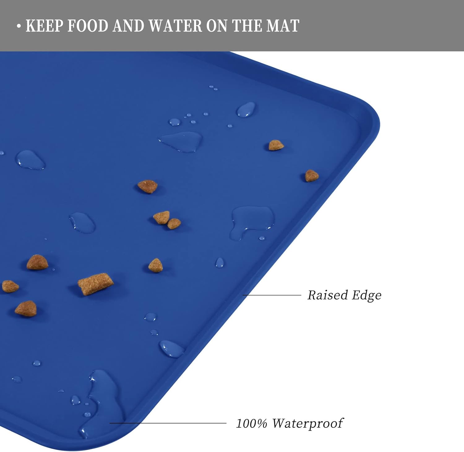 Waterproof Pet Feeding Mat with High Raised Edges, Heavier and Thicker Placemats for Cat Dog Water Bowl with BPA Free, Dogs Cats Food Mats for Messy Drinkers to Prevent Spill and Protect Floors