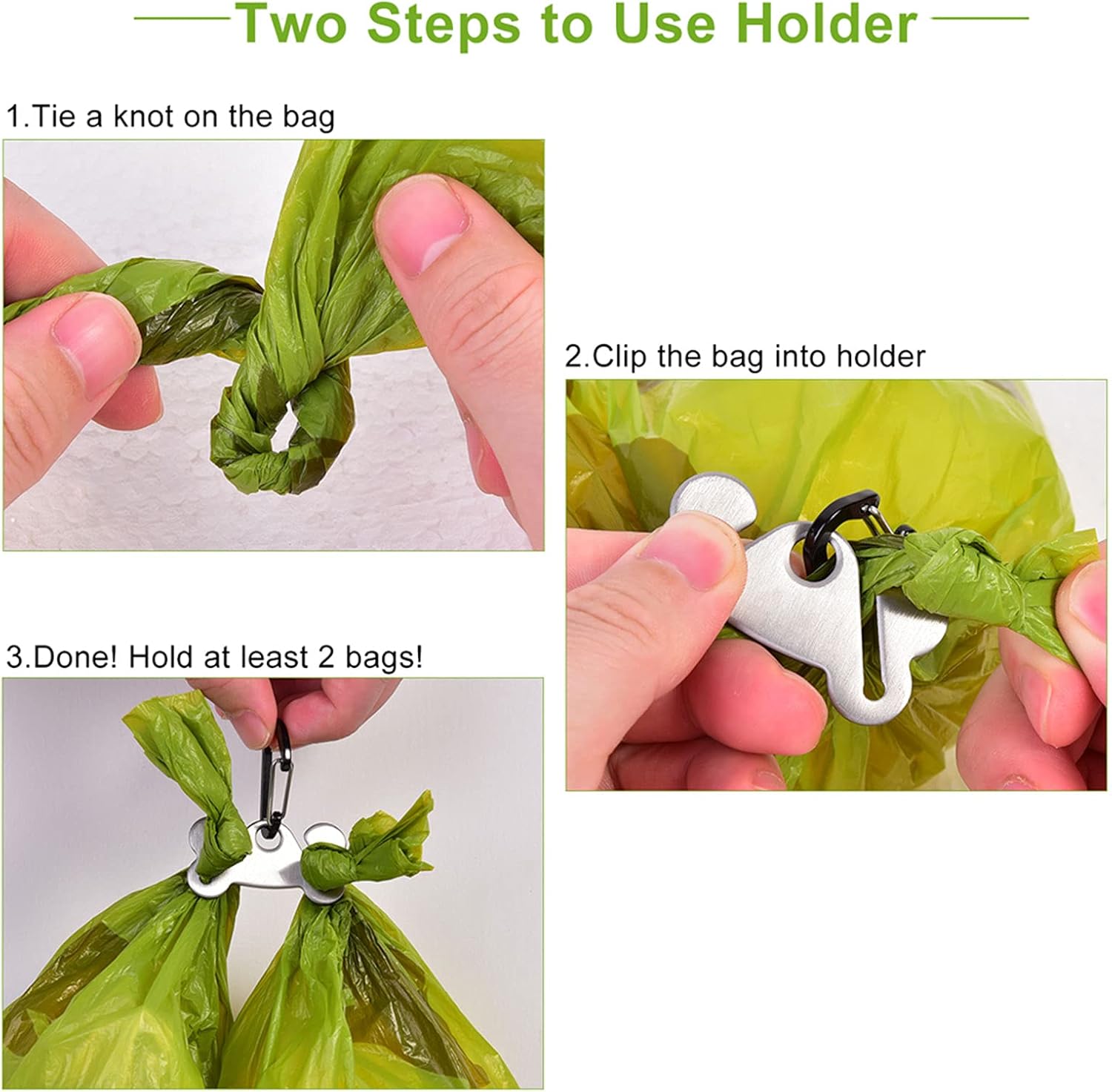 - Easy to use & DURABLE! - Made of stainless steel metal, our dog poop bag carrier / holder is super durable. You can use it for a long time. Also it’s very easy to use! Just tie a knot in the dog poop bags. Then hold the knot on the metal holder. And begin your hand free walking time!
