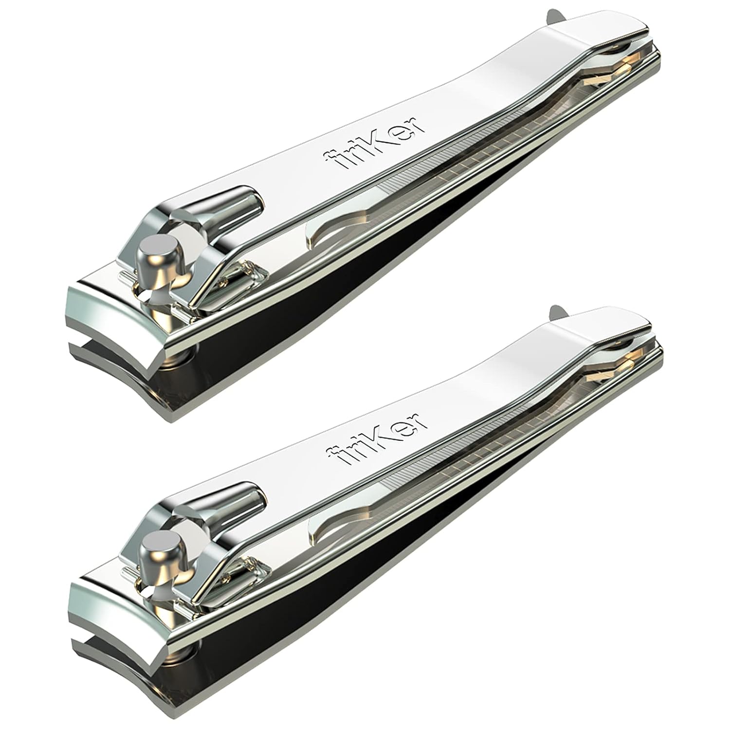 2PCS Stainless Steel Nail Clippers,Professional Fingernail Clipper and Toenail Clipper, Wide Easy Press Lever Nail Cutter with Swing Out Nail Cleaner/File for Men and Women