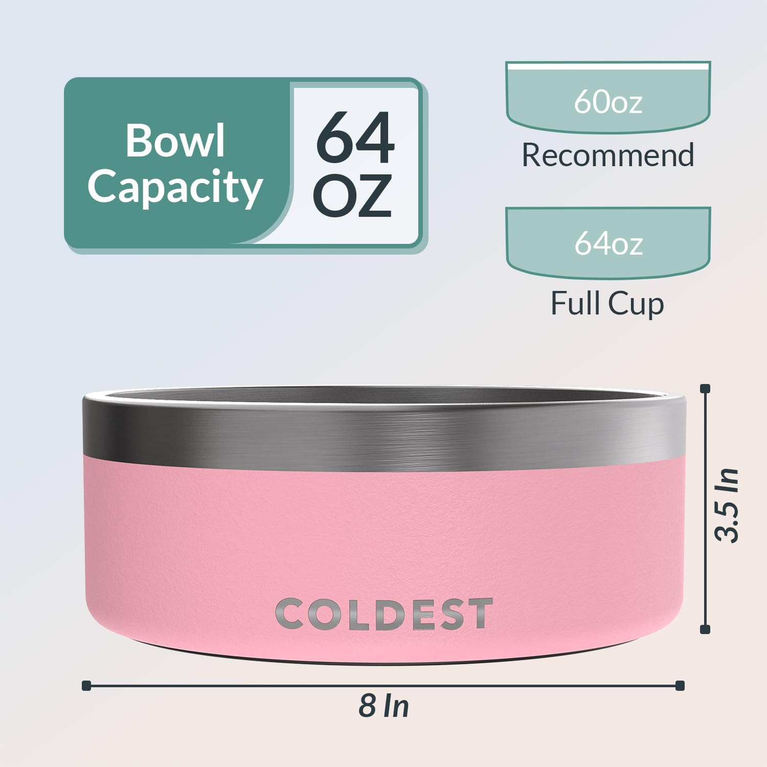 Coldest Dog Bowl - Anti Rust Metal, Non Slip, 3 Layers Insulated Stainless Steel Dog Bowls - Spill Proof & Heavy Duty - Water Bowl for Dogs, Cats & Pets, Dish Washer Safe (64 oz,Cotton Candy Pink)