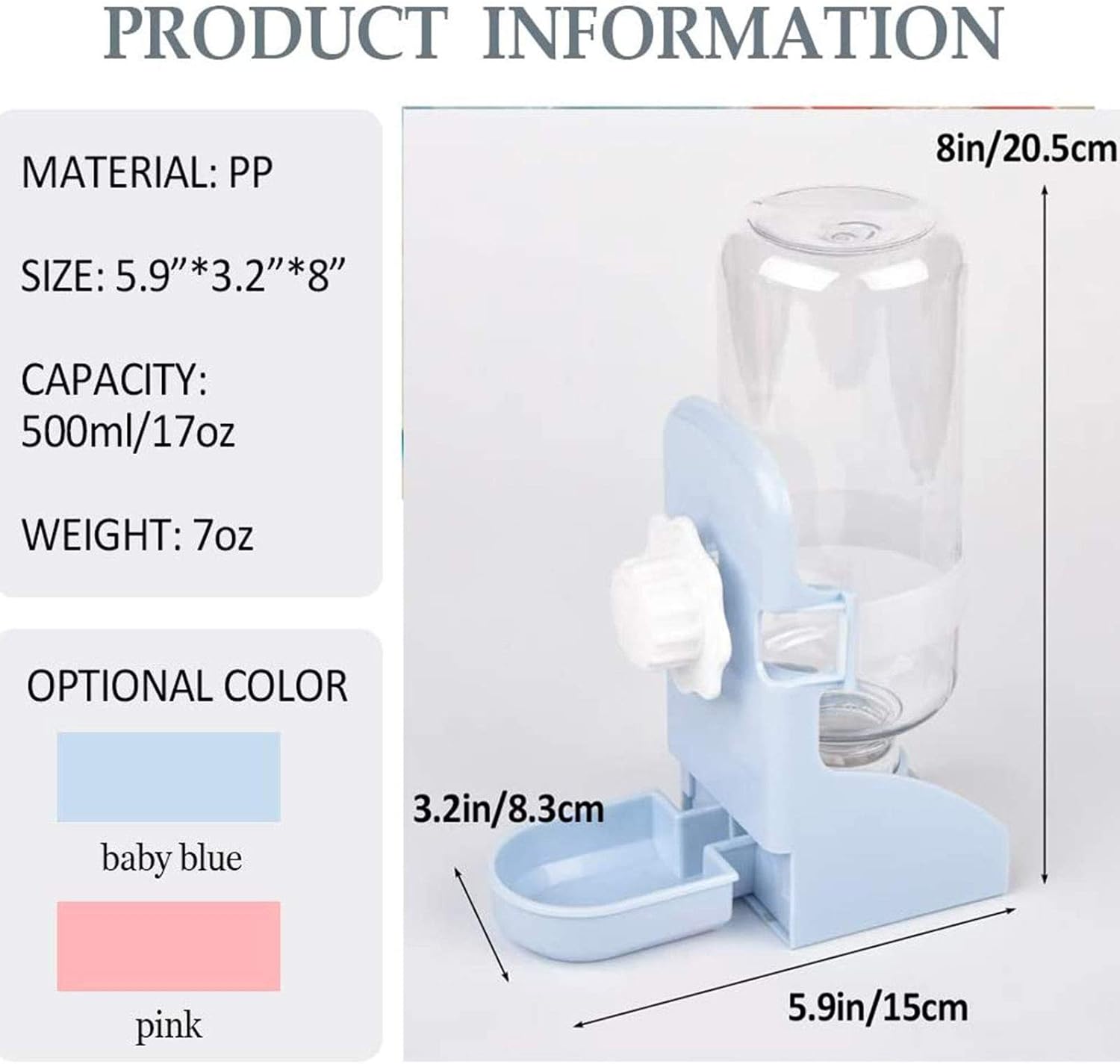 kathson Rabbit Water Bottle, 17oz Hanging Water Fountain Automatic Dispenser No Leak WaterFeeder for Bunny Chinchilla Guinea Pig Hedgehog Ferret