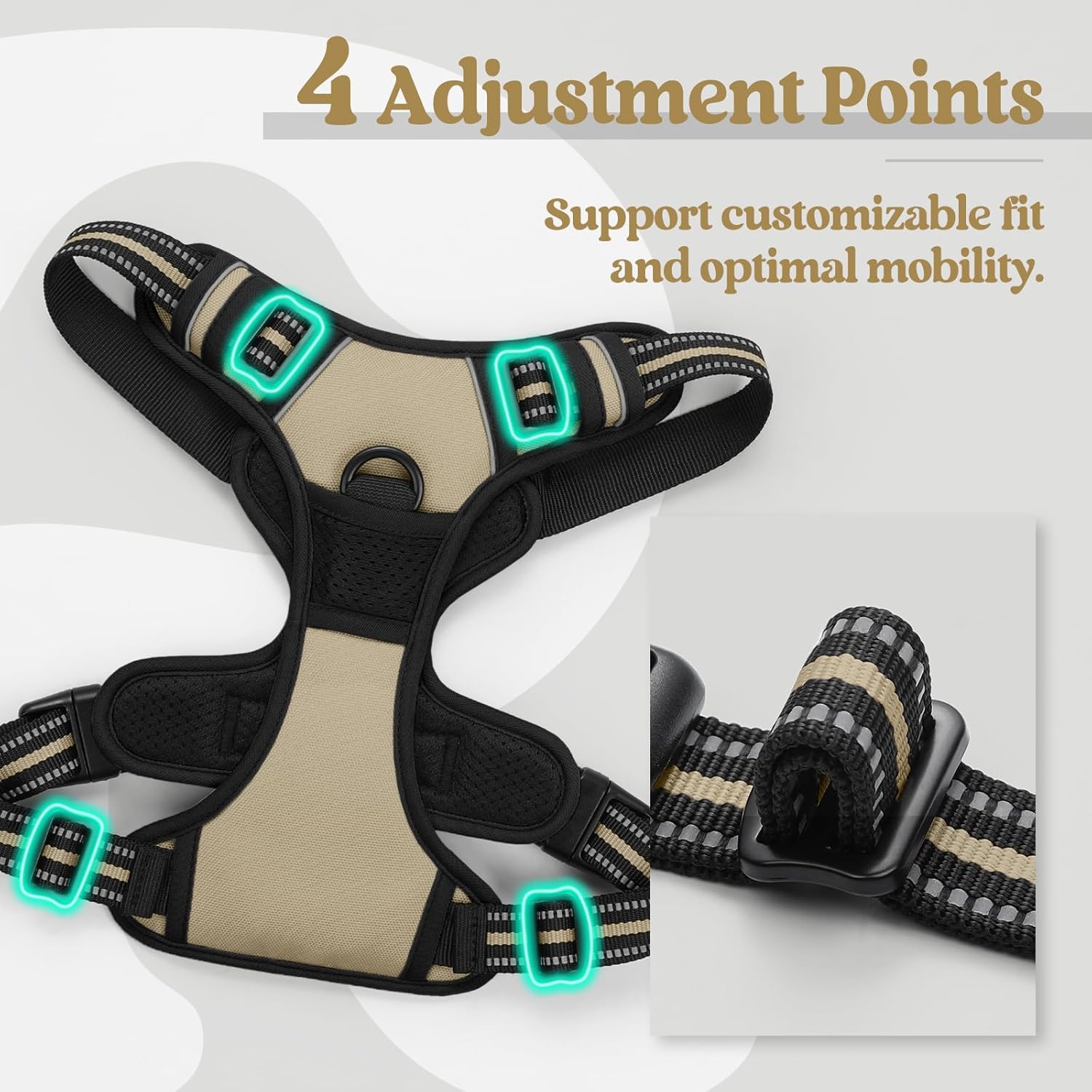 rabbitgoo Dog Harness No Pull with 2 Leash Clips, Adjustable Soft Padded, Reflective Oxford No Choke Pet Vest with Easy Control Handle for Large Dogs, Beige, XL