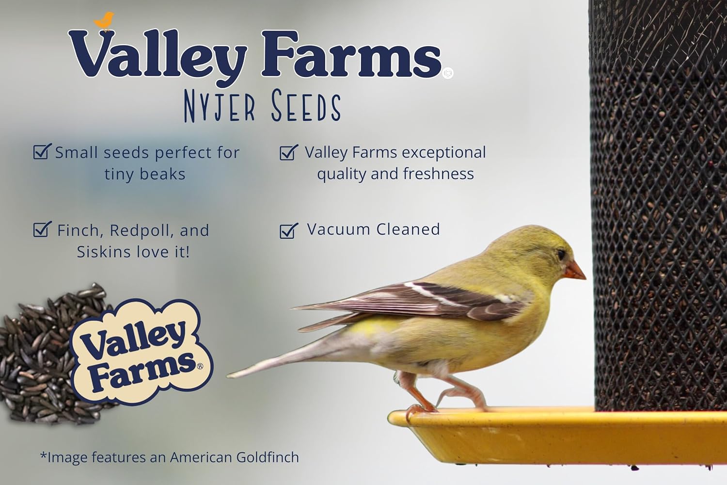 Valley Farms Nyjer Seed Wild Bird Food (4 LB) for Outside Feeders, Thistle Bird Seed for Outside Feeders, Great for Wild Finch!