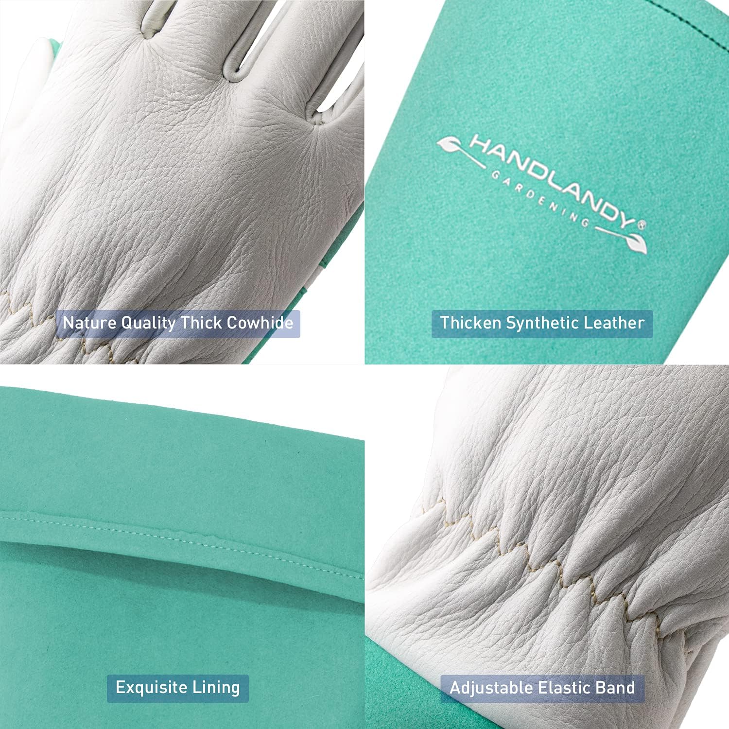 HANDLANDY Long Gardening Gloves for Men & Women, Thorn Proof Rose Pruning Gloves Leather Gauntlets Garden Glove Yard Work Glove (XS, Green)