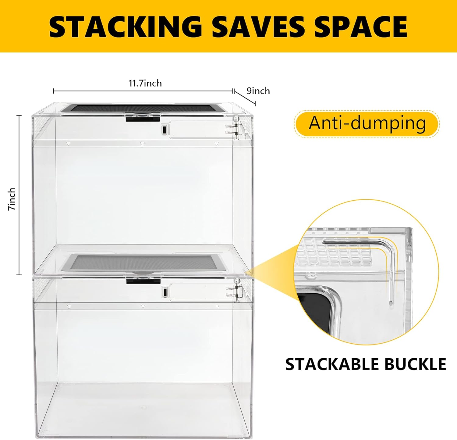 - Outstanding Design Details: Different from the ordinary acrylic material terrarium, our terrarium never breaks, HELIME PC terrarium adopts a one-piece design, with no need to assemble, waterproof bottom makes this tank can be used both as a desert terrarium and a rainforest tank, the feeding cover at the top, easy to feed your pet and prevent escape