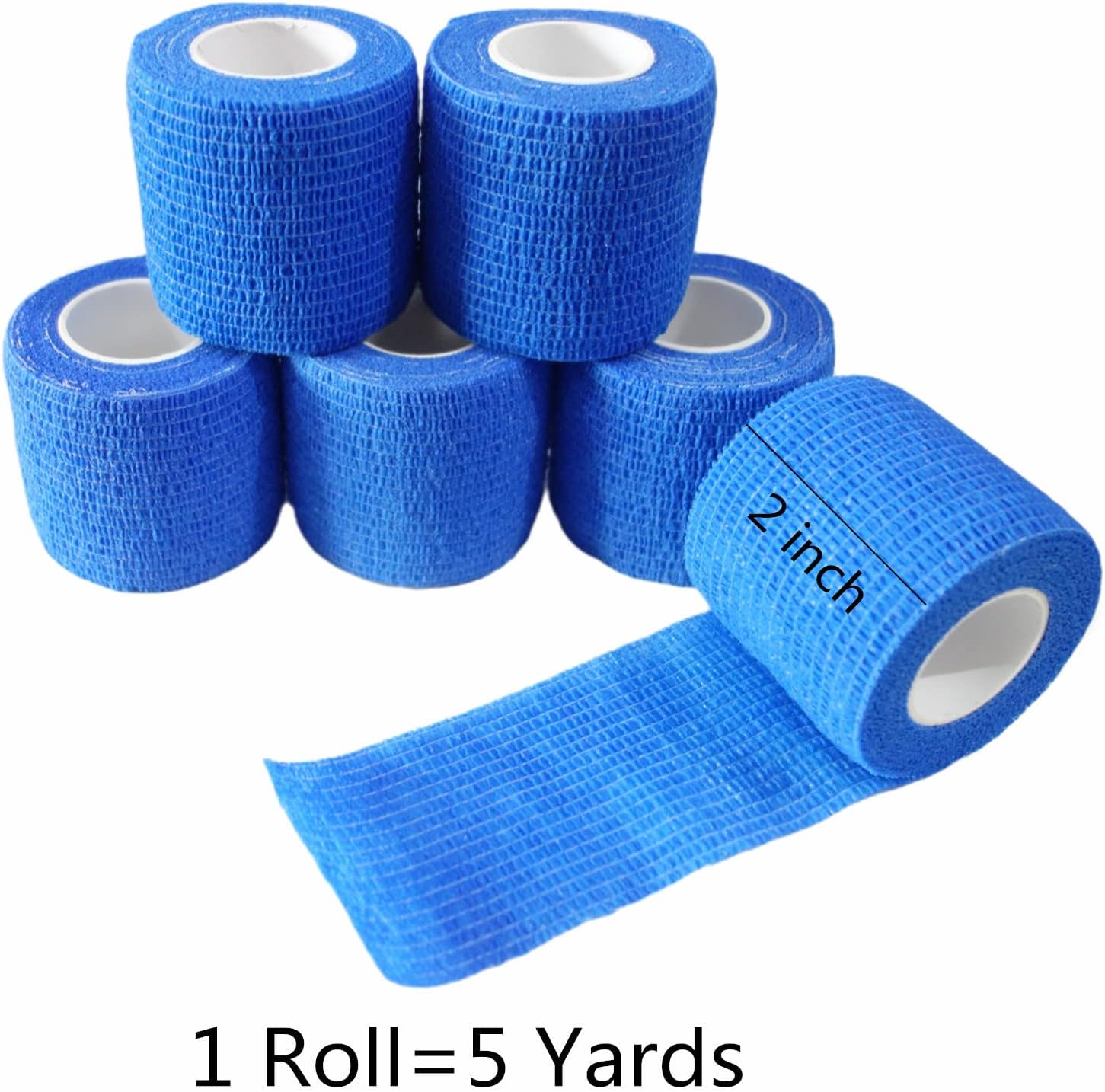 6 Pack 2" x 5 Yards Self Adhesive Bandage Wrap Breathable Cohesive Vet Wrap for Pets, Elastic Self-Adherent Tape for Sports, Wrist, Ankle (Blue)