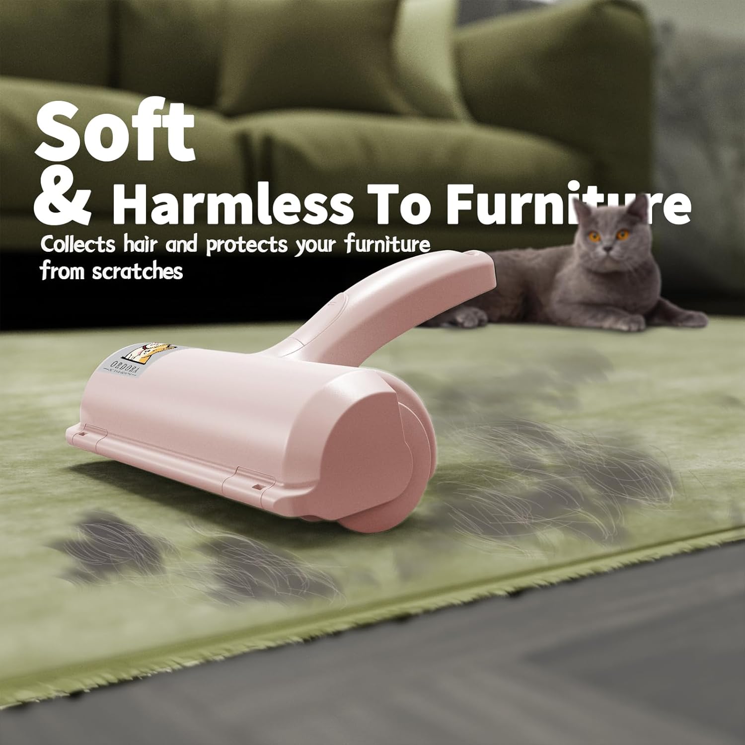 ORDORA Pet Hair Remover for Furniture/Bed, Reusable Dog Hair Remover Roller for Dog & Cat, Self-Cleaning, No Adhesive or Sticky Tape Needed, Perfect Fur Remover for Couch (Champagne Pink)