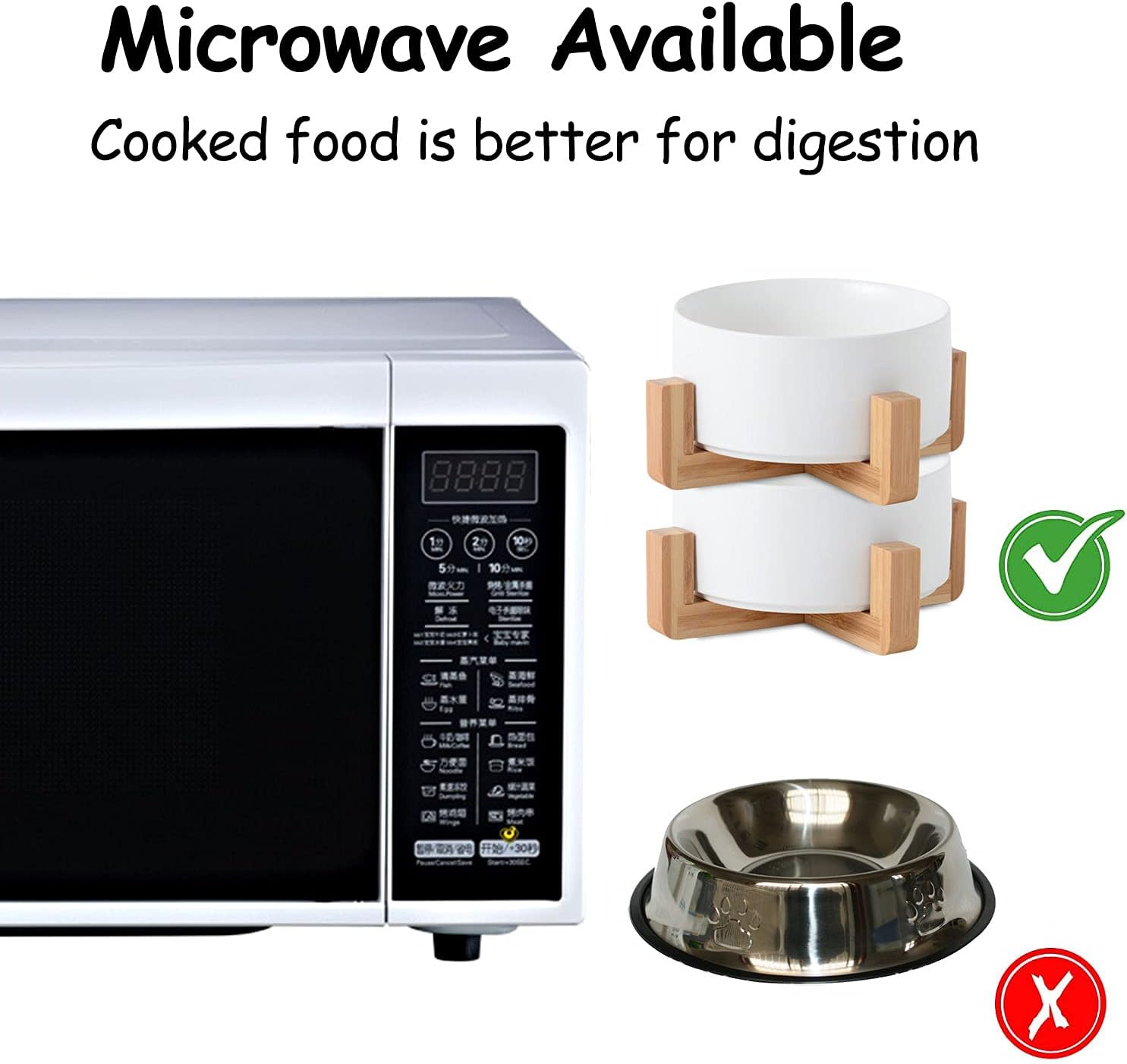 - DISHWASHER MICROWAVE SAFE - Ceramic pet bowls is made of Porcelain Ceramic with wood frame to keep from sliding on the floor. Ceramic cat dog bowls are high temperature ceramic, non-toxic durable. and the cat dog food water bowls conveniently dishwasherable so it can be easily cleaned. No Fuss.