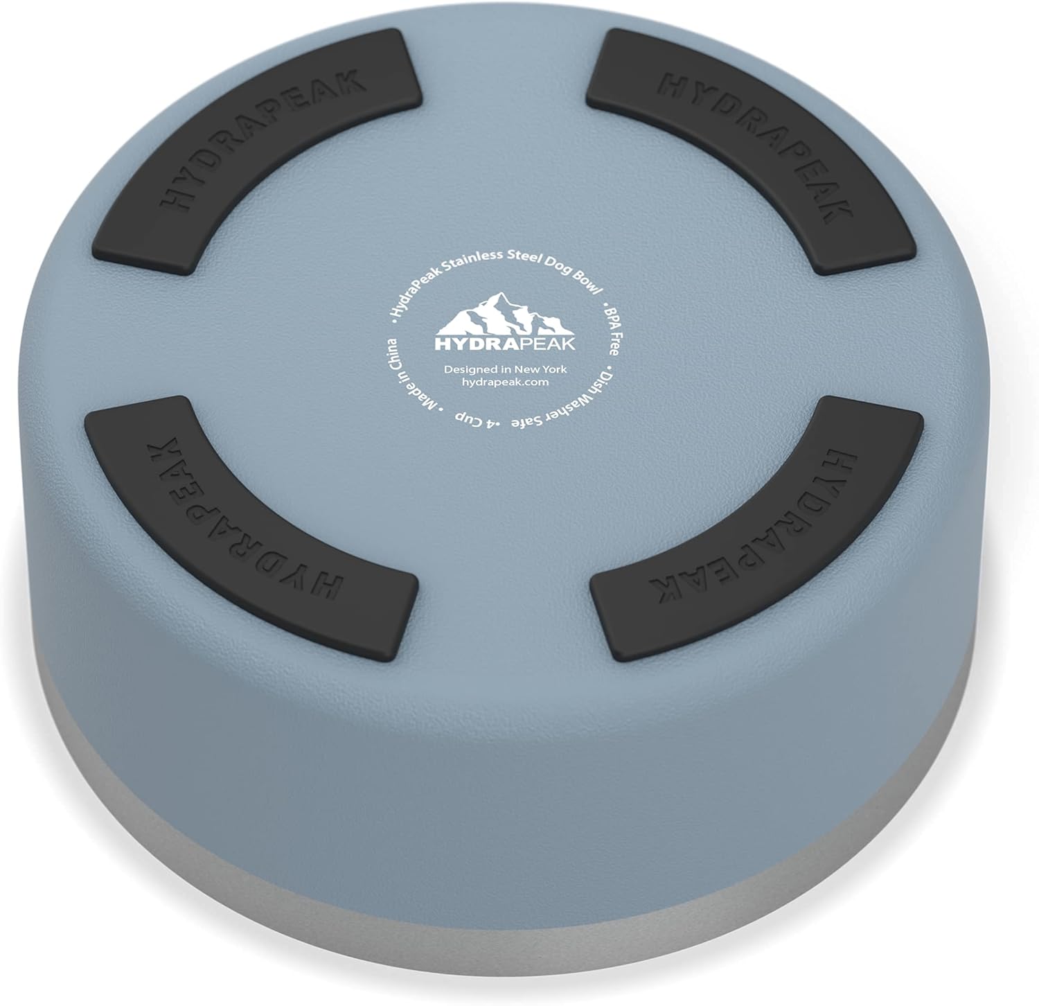 Hydrapeak Dog Bowl; Non Slip Stainless Steel; Water and Food Dish; Large Sized and Small Dogs; 32oz 64oz; Multiple Sizes; 4 Cup | Storm