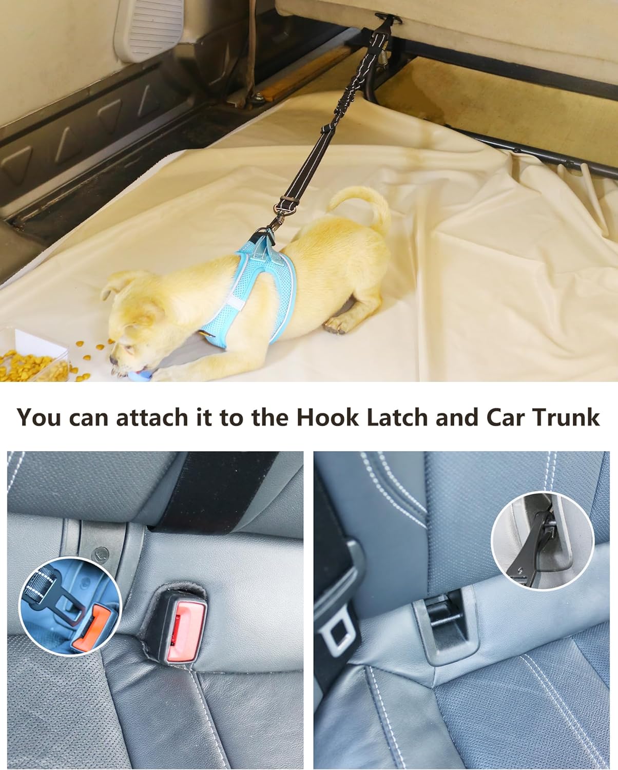 - Universal Compatibility - AUBELL dog car harness seatbelt is suitable for the different space of the vehicles. Canine bungee seat belts are suitable for a puppy, teether dog, small breed doggie, strong dog, and medium-large dog. For your pet's security, please do not attach the seat belt to your pet's collar directly. Using the seatbelt leash with a pet harness is recommended over a pet collar
