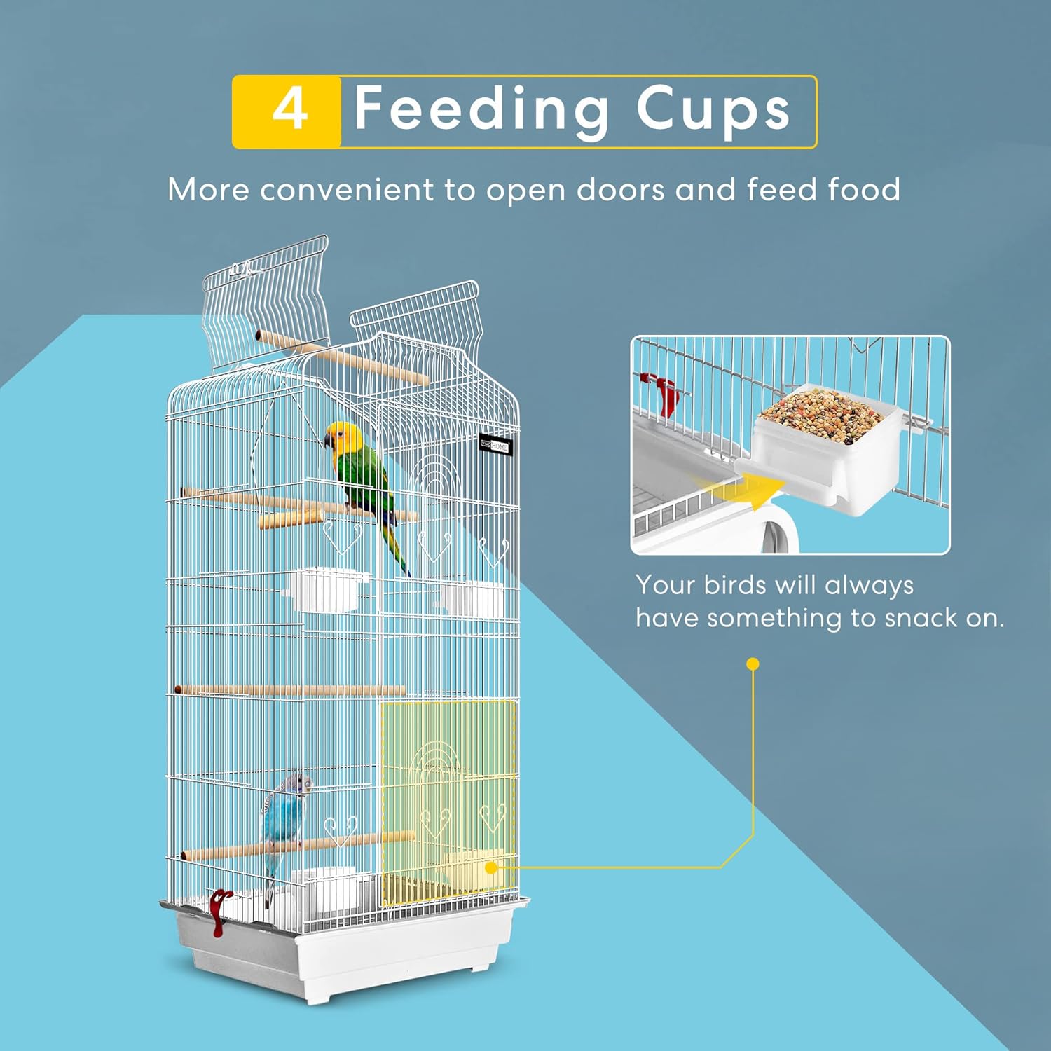 - VARIOUS WAYS TO PLAY - Includes a swing and multiple bars to stand on; Opening the doors is so convenient that you can change the food without disturbing your pets; Locking joints will keep the cage secure; With subtle design features that stand out among the crowd