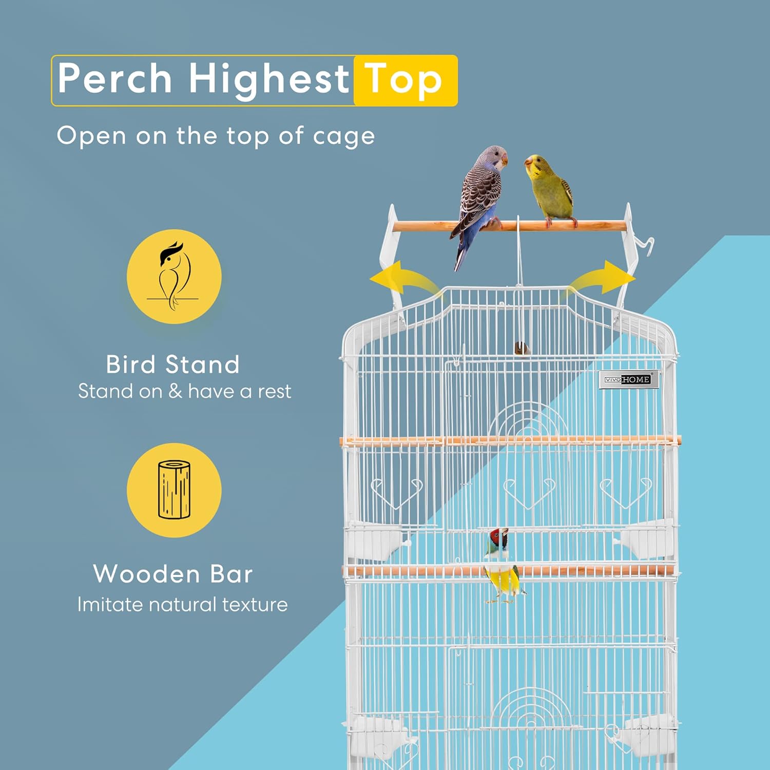 - MULTIPLE DOORWAYS - Designed with 2 doorways for your pet birds to enter and exit; The top of the cage can be opened up and propped open with a wooden crossbeam which is for your birds to stand on; Traditional doors are located on the side of the cage