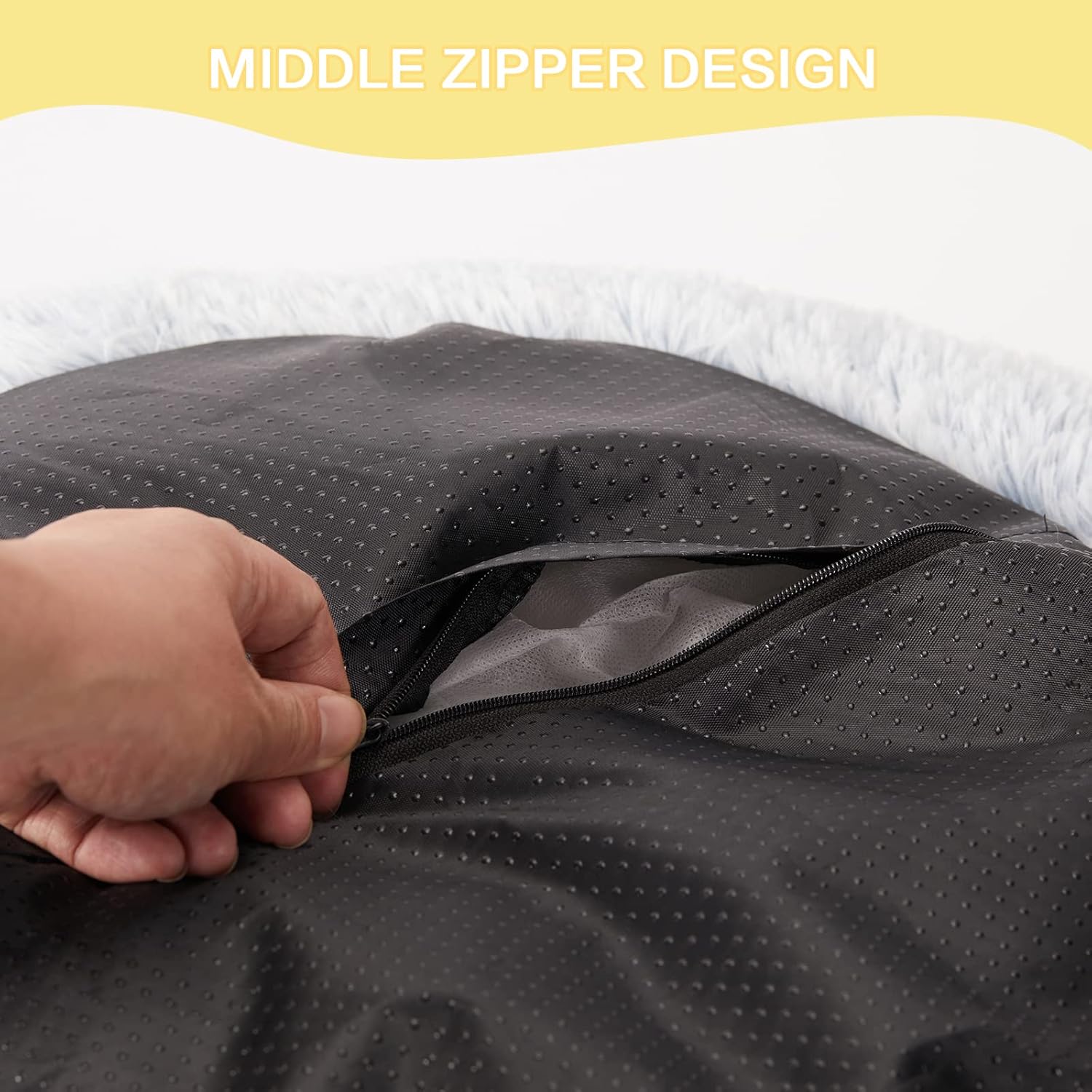 - [Easy Care] This plush dog bed is equiped with a middle zipper on the bottom. The cover is machine washable for your convenience. Tumble dry at low temperature. Do not bleach. Please shake and pat the fuzzy dog bed to make completely fluffy before use.
